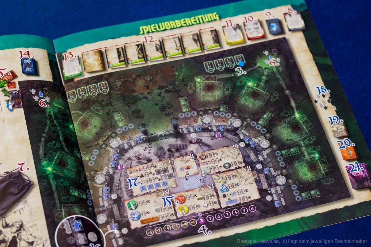 STRONGHOLD UNDEAD war nicht mein erstes Rodeo mit PORTAL GAMES. Nach meinen bisherigen Erfahrungen mit anderen Spielen des Verlags weiß ich mich insbesondere in den Regeltexten zurechtzufinden und weiß, was mich erwartet, was einen großer Vorteil darstellt. Damit möchte ich nicht sagen, dass ich eine Abneigung gegen den Verlag oder seine Spiele habe, jedoch ließ sich bei jedem meiner bisherigen Tests ein Muster bekannter Problematiken erkennen, die scheinbar immer wieder auftreten. So ist es auch in STRONGHOLD UNDEAD üblich, dass die Regeltexte teilweise ein wenig schwammig verfasst worden sind oder manche Eventualitäten des Spielverlaufes nicht abgedeckt wurden, sodass die Spielgruppen im „Regen stehen gelassen“ werden.