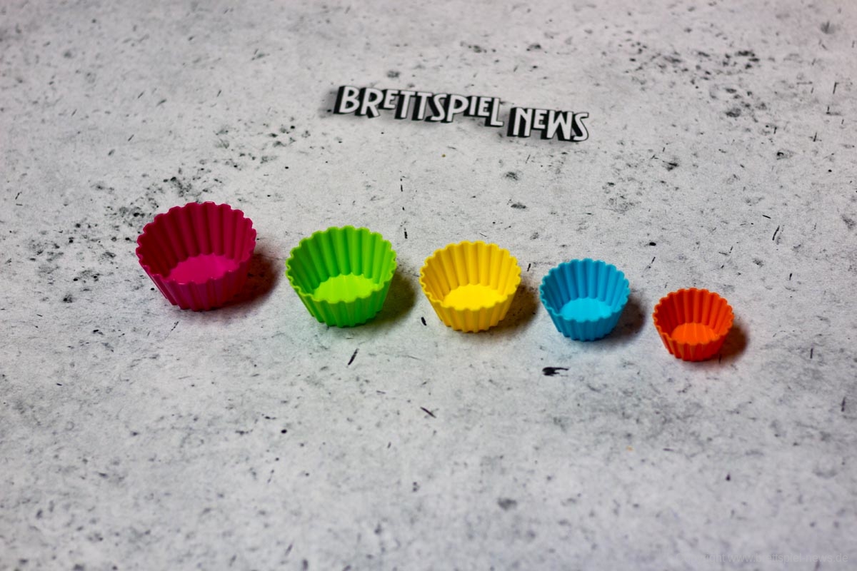 Schon in der zweiten Runde haben wir viel mehr Aufträge erfüllen können. Und so ging es auch weiter. Nach ein paar Runden ist man in den Bewegungsabläufen schon ziemlich routiniert. Nichtsdestotrotz haben wir es auch nach einigen Runden nicht ansatzweise geschafft, alle Aufträge zu erfüllen. Das war dann doch etwas ernüchternd, da es sicherlich unter anderen auch an der Handhabung der Förmchen lag. Da sie rund sind und keine Grifffläche haben, scheitert es während dem Spielens öfters daran, dass man die Förmchen nicht hochheben kann. Für grobmotorische Menschen kann das frustrierend sein.