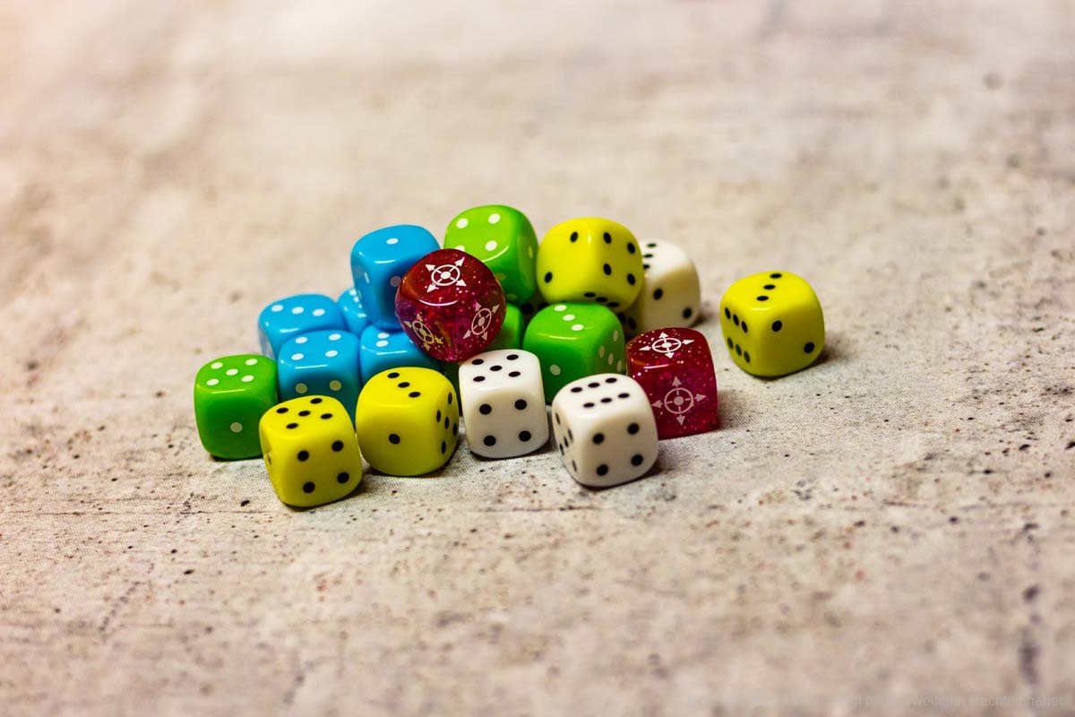Nach dem simplen Aufbau landen dann auch bald die ersten Versuche im Graben und die Freude ist groß, wenn mal eine Kombination wie geplant abgeräumt wird. Die Punkte sind schnell gezählt und die Würfel werden an die nächste Person weitergegeben. So bleiben die Runden kurz.