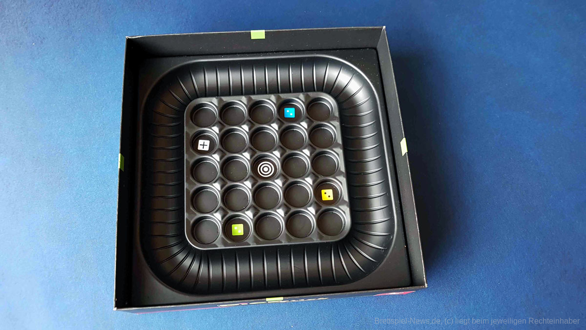Mit Vorfreude haben wir "Dice Flick" geöffnet und aufgebaut. Die Regeln sind tatsächlich schnell gelesen und binnen weniger Minuten liegen die ersten Würfel zum Schnipsen auf der Rampe. Das Material ist gut, die Rampen lassen sich einfach auf die Spielkiste aufstecken und der mitgelieferte Stoffbeutel wirkt hochwertig. Die Box samt Inlay als Spielfläche zu verwenden ist eine nette, platzsparende Idee. Allerdings wünschen wir uns eine kreativere Gestaltung. Das weitgehend schwarze Spielfeld mit wenigen farblichen Akzenten ist funktional, aber vor allem für Familien mit Kindern, regt es wenig die Fantasie an.