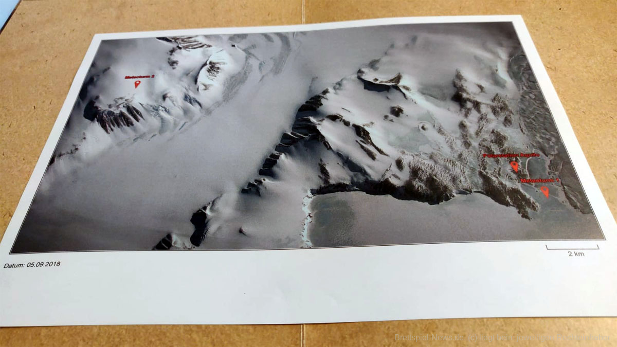 Hier hat FATALE ANTARKTIS nämlich einige Probleme. Während es äußerlich eine sehr schöne Thematik vermittelt, bröckelt es doch ein wenig in der Umsetzung. Viele Hinweise in der Spielschachtel sind sehr kryptisch und wirken fast so, als ob eine Polizeiausbildung von Nöten gewesen wäre, um sie ohne Tipps richtig deuten zu können. Es kam recht oft vor, dass meine Spielgruppe und ich ratlos vor dem Spielmaterial saßen und keinen blassen Schimmer mehr hatten, was hier eigentlich zu tun ist. Begründet ist dieses Problem in der Verknüpfung der unterschiedlichen Hinweise. Viele davon sind stark miteinander verbunden, sodass die Spielgruppe nicht weiterkommt, solange sie den Ersten nicht richtig gedeutet hat. Dadurch fühlt sich das Spielgeschehen sehr linear an, was insbesondere in einer verworrenen Ermittlung wie dieser völlig fehl am Platz ist. Aus diesen Gründen schlichen sich bei uns auch viele Frustmomente ein, die den Spielspaß und -fluss immer wieder unterbrachen.