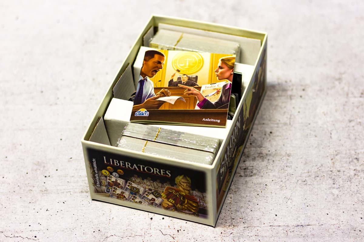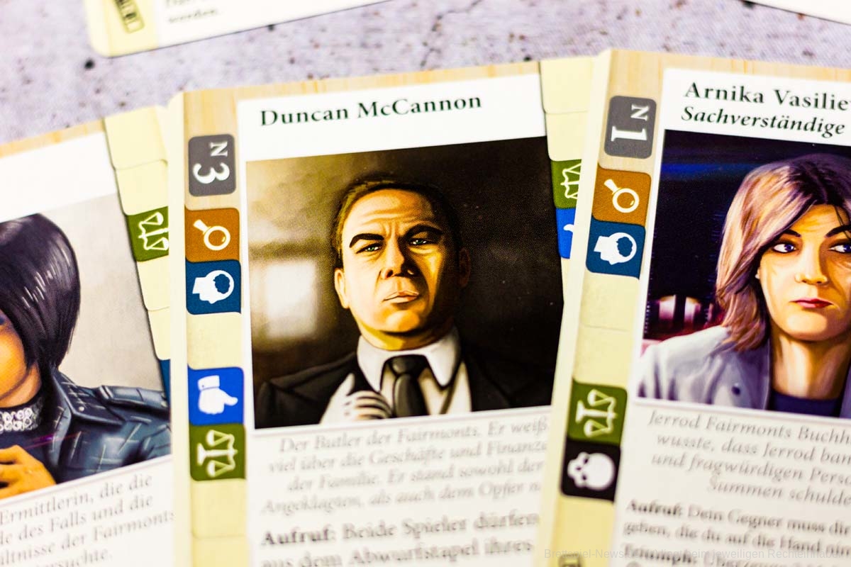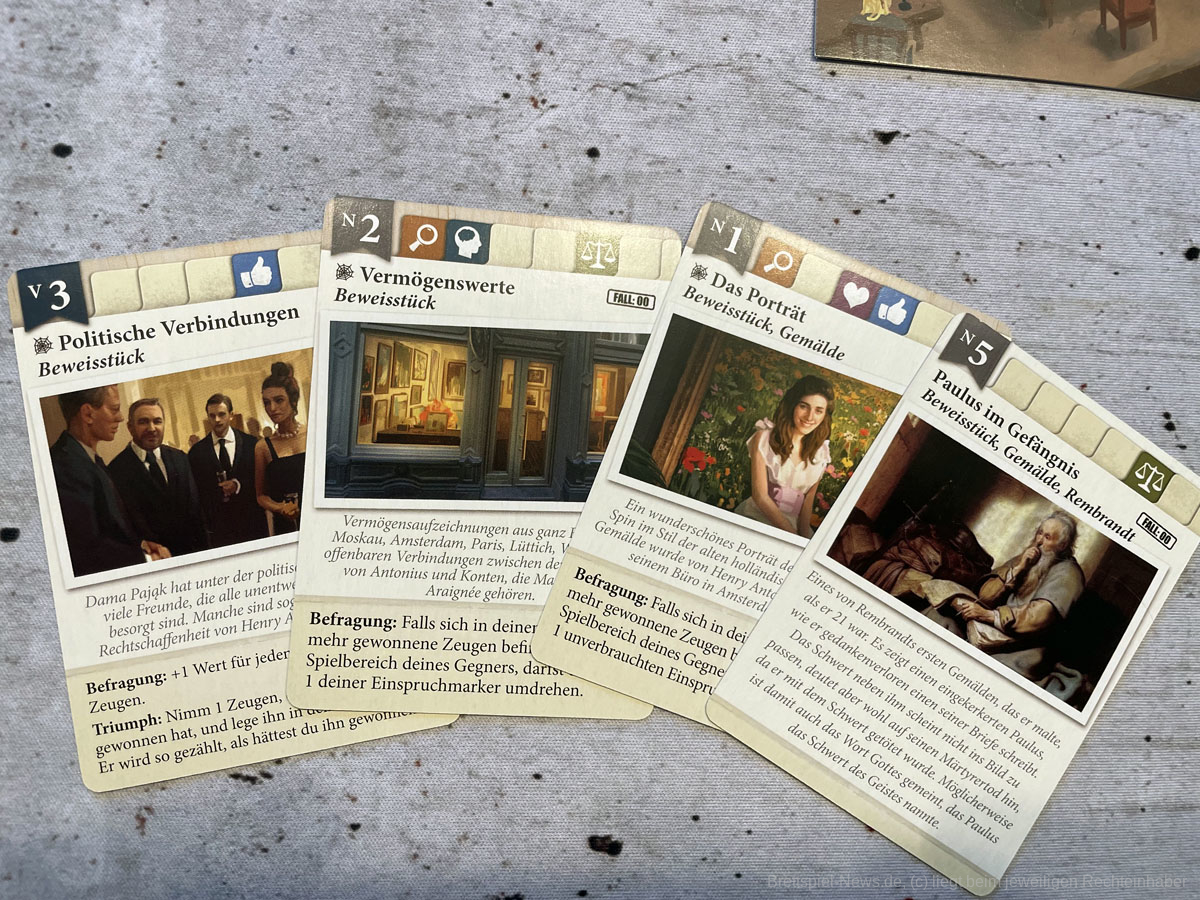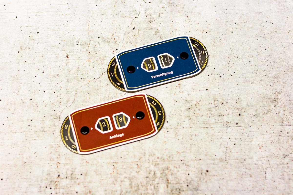 Ein asymetrisches Zweipersonenspiel mit intelligenter Tauziehmechanik ist für uns normalerweise immer einen Blick wert. Auch der erste Aufbau und der Einstieg mit dem Vorlesen der Fallkarte, die uns offerierte, einen authentischen Gerichtsprozess nachzuspielen, machte neugierig. Die Illustrationen der realistisch gezeichneten Richterkarten und Beweisstücken sowie die passenden Flavourtexte und darauf abgestimmte Kartenaktionen, bemühen sich das Gefühl eines dramatischen Gerichtsprozess zu transportieren. Leider verkommt der angestrebte juristische Schlagabtausch schnell zu einem recht einsilbigen Symbol sammeln.