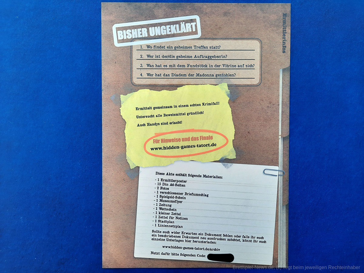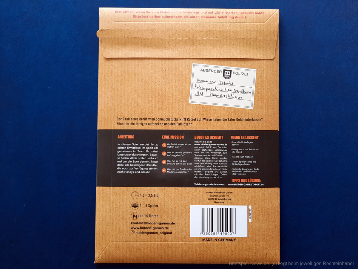 Das Spielmaterial ist von guter Qualität und die Unterlagen sind abwechslungsreich. Virtuelle Medien werden gut eingebunden, wobei mindestens ein Smartphone benötigt wird. Bei diesem Fall kann die eigene Telefonnummer angegeben werden, um Anrufe von Kommissar Hahnke zu erhalten. Wer das nicht möchte, kann diese Informationen auch über die Website abrufen. Zudem ist das ganze plastikfrei verpackt.