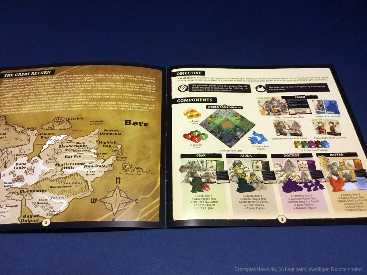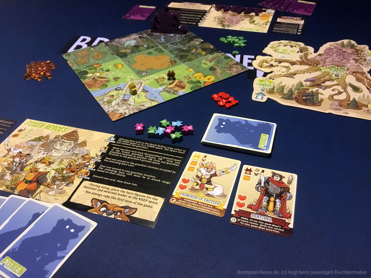 Das Material ist toll. Die Fuchsmeeple sind bedruckt und dadurch den einzelnen Einheitenkarten sofort zuzuordnen. Die Wächtermeeple sind riesig und besitzen zusätzliche Holzmarker. Auch die Illustrationen sind ansprechend. Es bleibt mir ein Rätsel, warum dieses Spiel bisher noch keine deutsche Umsetzung erfahren hat, denn besonders in Pandemiezeiten mit reduzierter sozialer Interaktion oder für Paare und Familien lohnt sich ein Blick auf dieses Kleinod. Doch auch Kennerspieler:innen können an SKULK HOLLOW ihre Freude haben. Es kommt schnell auf den Tisch und meist bleibt es nicht bei einer Partie. Die Konflikte sind zügig gespielt und immer wieder anders. Zudem muss ich einräumen, dass ich bis zu diesem Zeitpunkt als Besitzer des Spiels noch nie dazu gekommen bin, einen Wächter zu spielen. Stets lasse ich meinen Gästen die Wahl und alle haben sich bisher für die Kolosse entschieden. Ich kann SKULK HOLLOW nur empfehlen.