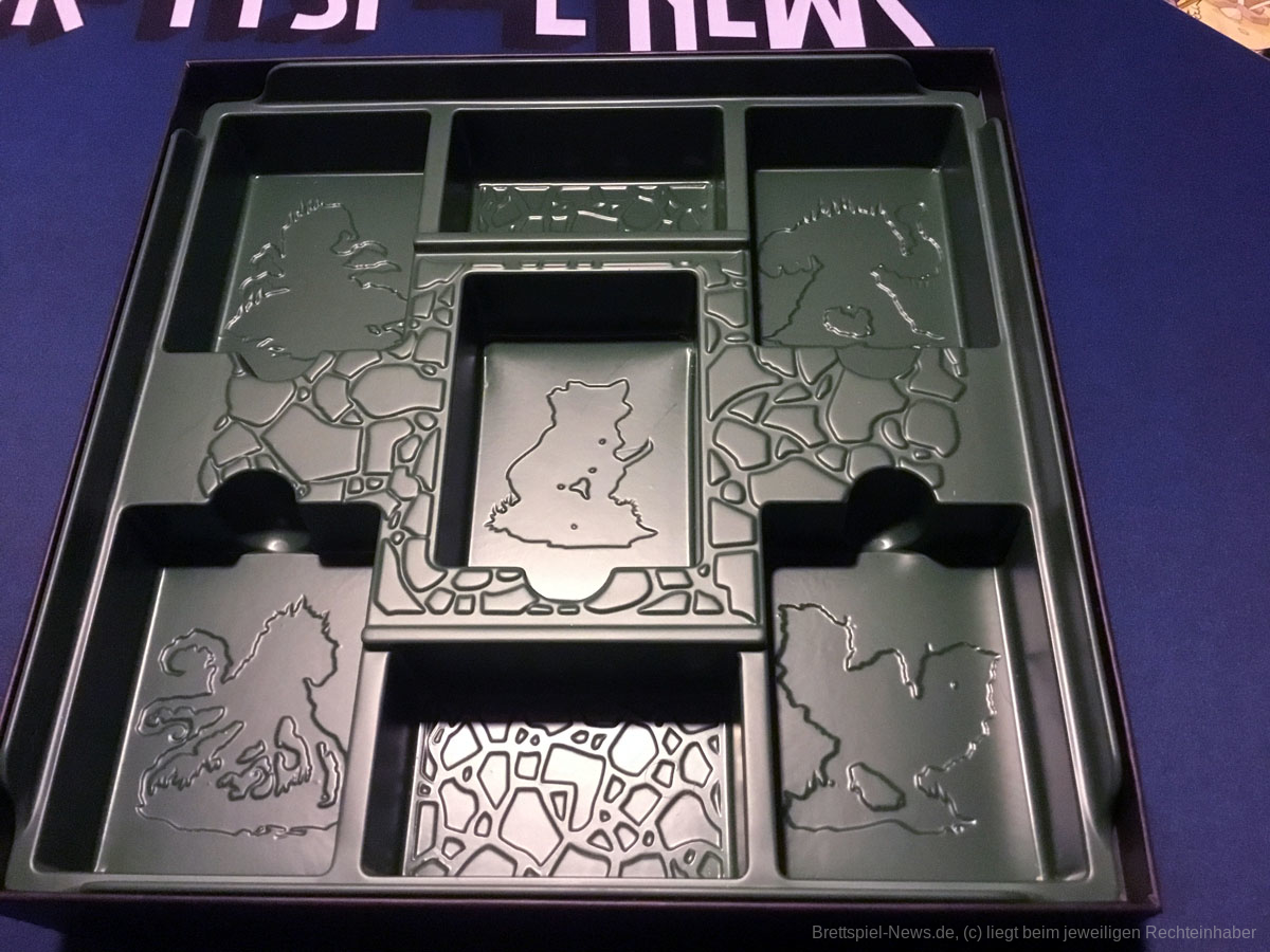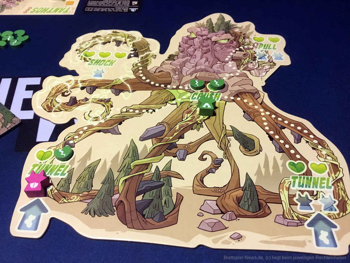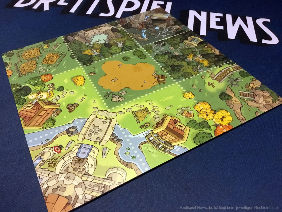 Das Bezwingen mächtiger Riesen durch kleine Krieger ist nichts neues und auch SKULK HOLLOW hat schon ein paar Jahre hinter sich. Dennoch ist das Konzept ein sehr erfolgreiches, dass bereits auf diversen Spielekonsolen seine Umsetzung gefunden hat. Shadow of the Colossus heißt die Videospielvorlage dieses Brettspiels und sorgt mit seiner stimmungsvollen Atmosphäre und Melancholie für viel Begeisterung bei Fans. Die Schwermut, die das Videospiel auszeichnet, findet sich allerdings nicht in SKULK HOLLOW wieder. Die Gestaltung ist bunt, ansprechend und familienfreundlich.