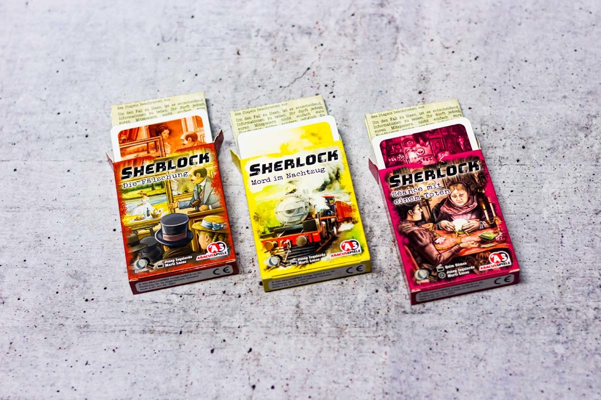 Die SHERLOCK-Reihe von ABACUSSPIELE bietet eine stetig wachsende Anzahl an Ablegern, wobei Fans der Reihe bereits aus einem sehr großen Repertoire an unterschiedlichsten Geschichten wählen können. Mit MORD IM NACHTZUG, DIE FÄLSCHUNG und SÉANCE MIT EINEM TOTEN erschienen 2021 3 neue Ableger der Reihe, die Spielenden neue Fälle in den drei unterschiedlichen Schwierigkeitsgraden präsentieren. Natürlich haben wir es uns nicht nehmen lassen, diese neuen Ableger genauer unter die Lupe zu nehmen.