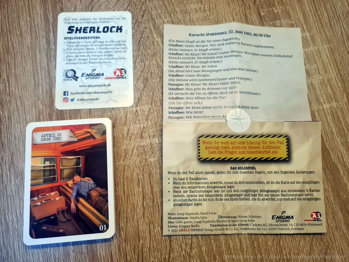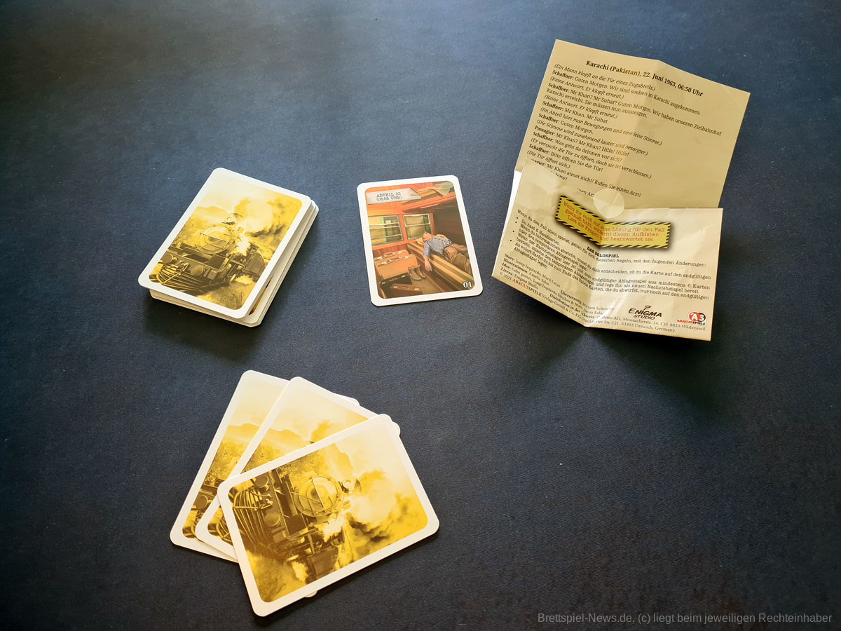 Ganz bewusst habe ich den zweiten Teil der Reihe (MORD IM NACHTZUG) in diesem Fazit auch erstmal übersprungen. Diesen habe ich nämlich alleine bewältigt und konnte von den obengenannten Problempunkten kaum noch etwas spüren. Warum? Im Solomodus erhalt man 6 Karten anstatt 3. So lässt sich viel schneller ein besserer Überblick über die Faktenlage schaffen und die Verbindungen um einiges besser erkennen. Außerdem besteht hier die Option einen dauerhaften und einen temporären Ablagestapel zu erstellen, sodass Hinweise, bei denen man sich nicht so ganz sicher ist, wieder ins Spiel kommen können, ohne dass gleich alles verloren zu sein scheint.
