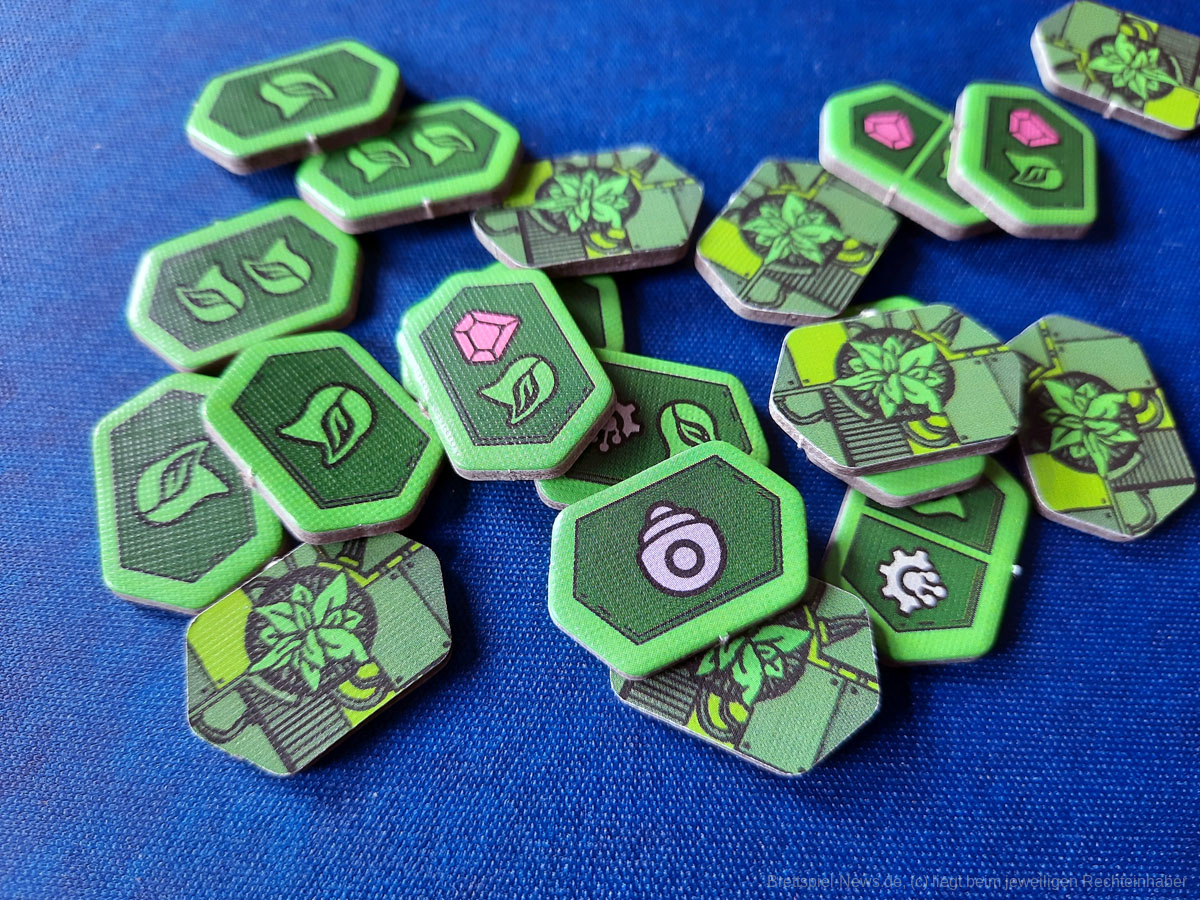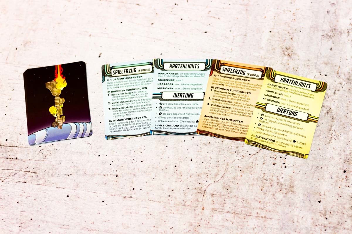Auch die Sabotage-Marker sind nun deutlich attraktiver, wenn dadurch gleich eine ganze Handvoll gegnerische Crew-Kapseln auf einmal ausgelöscht werden können. Hier kann die Reaktionsmöglichkeit für Betroffene komplett entfallen, wenn an einem Wrackteil ein solcher Sabotage-Marker erst nach dem eigenen Zug aufgedeckt und von einer weiteren Person direkt ausgelöst wird. Hierdurch ist es weniger planbarer, wann und wo die eigenen Crew-Kapseln in Gefahr sind, was ein ganz anderes Risikomanagement für diese verlangt.