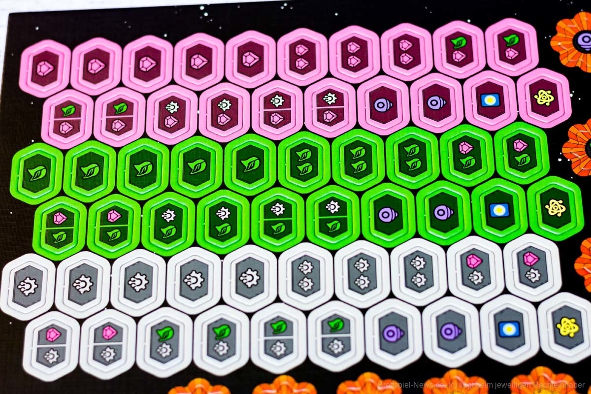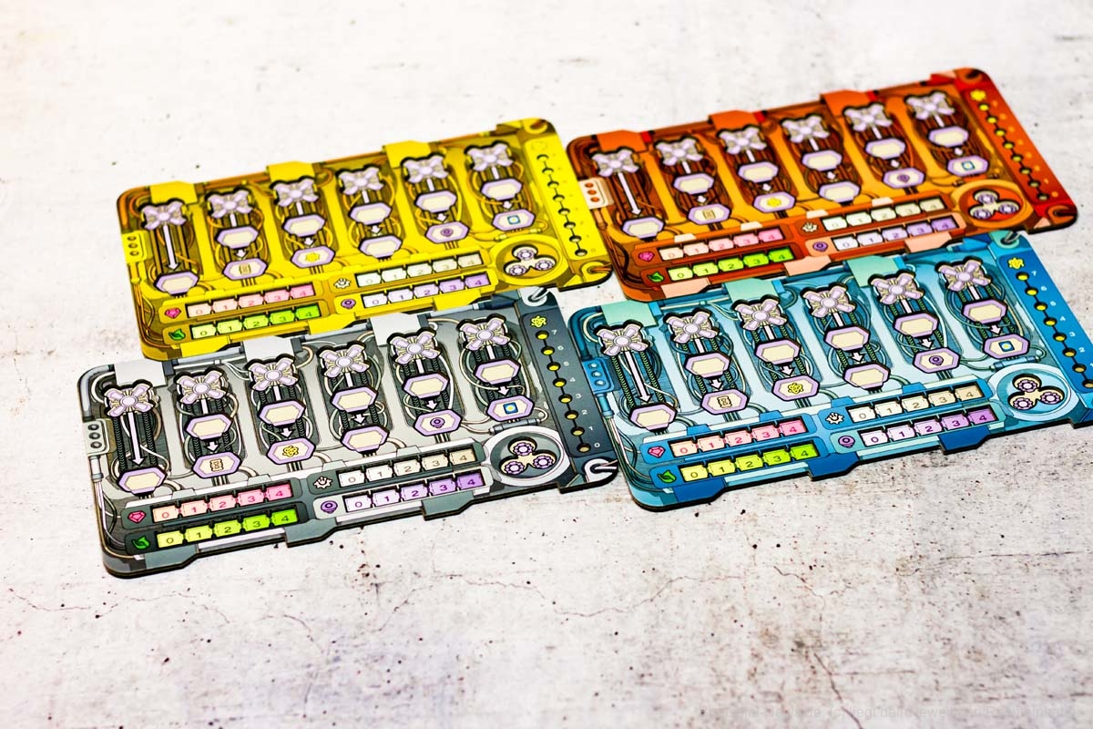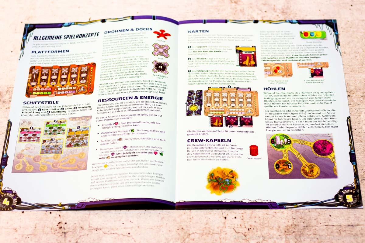 Um die Regeln zu lernen, haben wir die erste Partie CRYO zu zweit gespielt. Schon beim Auspacken waren wir begeistert, das Spielmaterial und die Optik hat uns sofort überzeugt. Die Drohnen, Crew-Kapseln, anpassbaren Double-Layer-Boards und die Ressourcen-Würfelchen lassen das Herz gleich höherschlagen und machen den Spielaufbau zur Freude. Die Regeln sind für ein Kennerspiel schnell gelernt oder vermittelt.