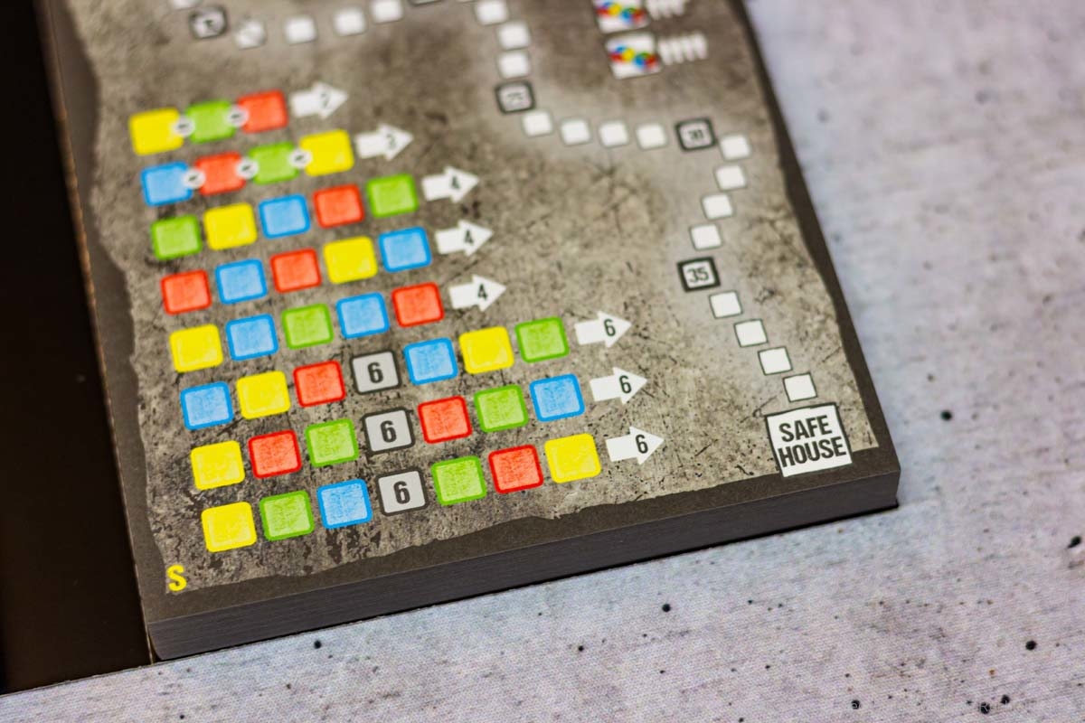Was auch merkwürdig erscheint, ist die Begrenzung der Spielerzahl auf vier. Vom Grundprinzip her sollte es problemlos möglich sein, sich auch mit deutlich mehr Spielenden auf die Flucht zu begeben, wie es bei anderen Roll-and-Write-Spielen auch der Fall ist. Das würde zwar bedeuten, dass es mehr unterschiedliche Spielblatt-Versionen geben müsste, aber das würde wiederum das Problem der geringen Variation beheben.