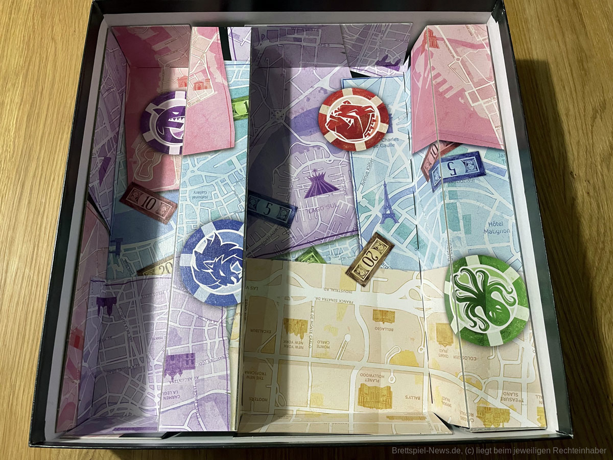In der Box befindet sich ein farblich passendes Inlay, welches bei der Aufbewahrung des Spielmaterials leider eher stört als hilft.