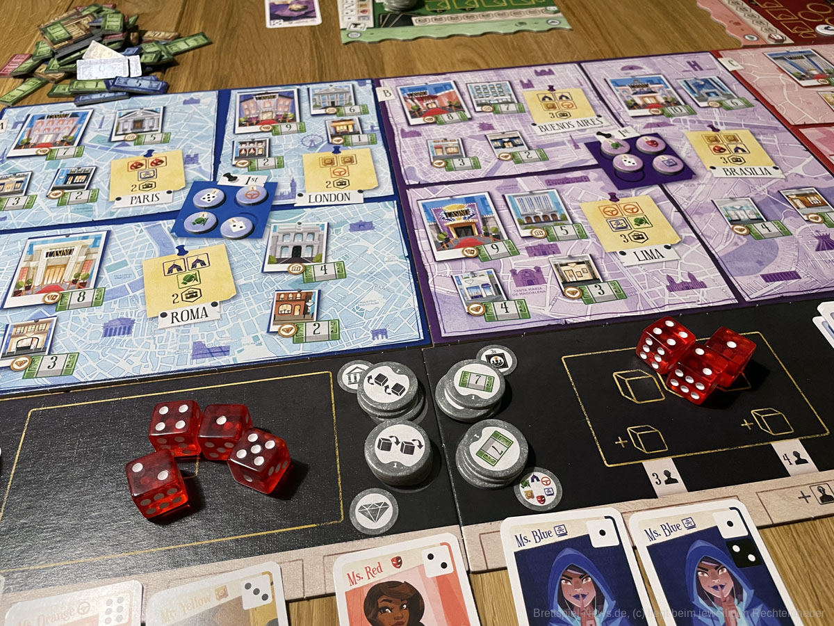 Am Ende des Spiels winken weitere Geldbelohnungen dafür, dass jede:r Spezialist:in mindestens einmal oder drei verschiedene jeweils dreimal im eigenen Team vertreten sind. Nicht verbrauchte Bonusmarker aus den Überfällen sind weiteres Geld wert. Der Spielende mit dem größten Vermögen geht als erfolgreichste diebische Person in die Geschichte ein.