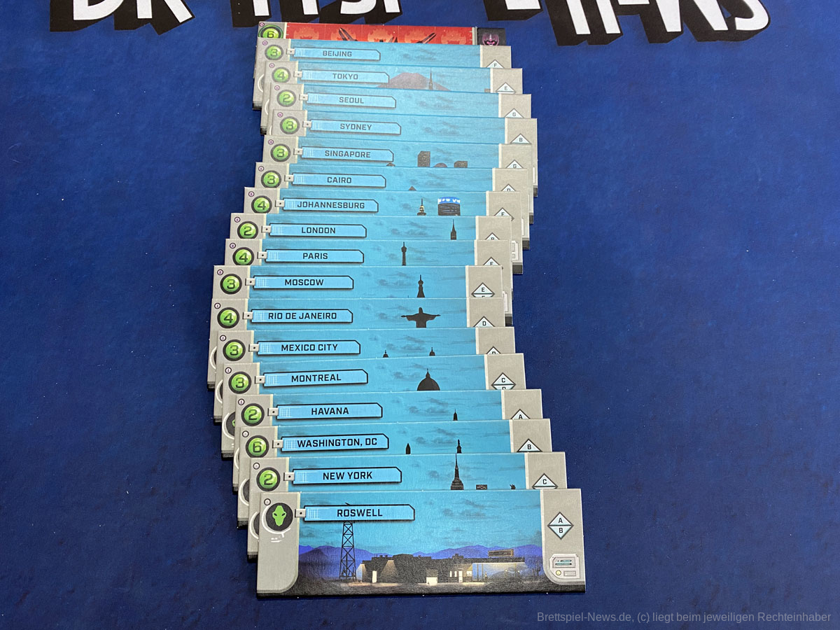 Die Varianz, die das Spiel bietet, ist äußerst hoch. Es liegen 17 Städte bei, die die 12 Stützpunktplättchen immer wieder neu zusammenstellen. Mit dem variablen Aufbau des Luftraums, den Szenarien und Charakteren, die das volle Spiel bietet, kann ich mir die Schwierigkeit von sehr einfach bis unschaffbar schwer in kleinen Stufen einstellen.