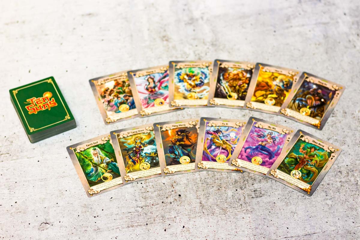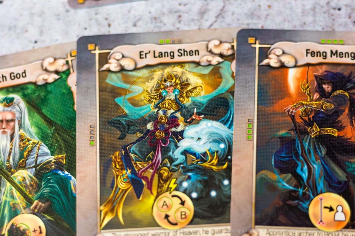 Götterkarten liefern wertvolle Sonderfähigkeiten für das weitere Spiel. Einige sind permanent, manche sind nur einmalig und sofort nutzbar. Zwischen den tatsächlichen Göttern finden sich allerlei Orts- und Monsterkarten. Orte bringen bei Spielende Punkte. Je mehr Karten gesammelt wurden, desto mehr Prestigepunkte bringen sie ein. Monster müssen besiegt werden, indem entsprechend der Personenanzahl Energie von allen Spieler:innen gemeinsam geboten wird. Ist der nötige Wert erreicht oder überschritten, erhalten alle Beteiligten Punkte; die oder der Meistbietende erhält mehr als die Anderen. Sollte der nötige Wert nicht erreicht werden, verlieren alle Mitbietenden Prestigepunkte.