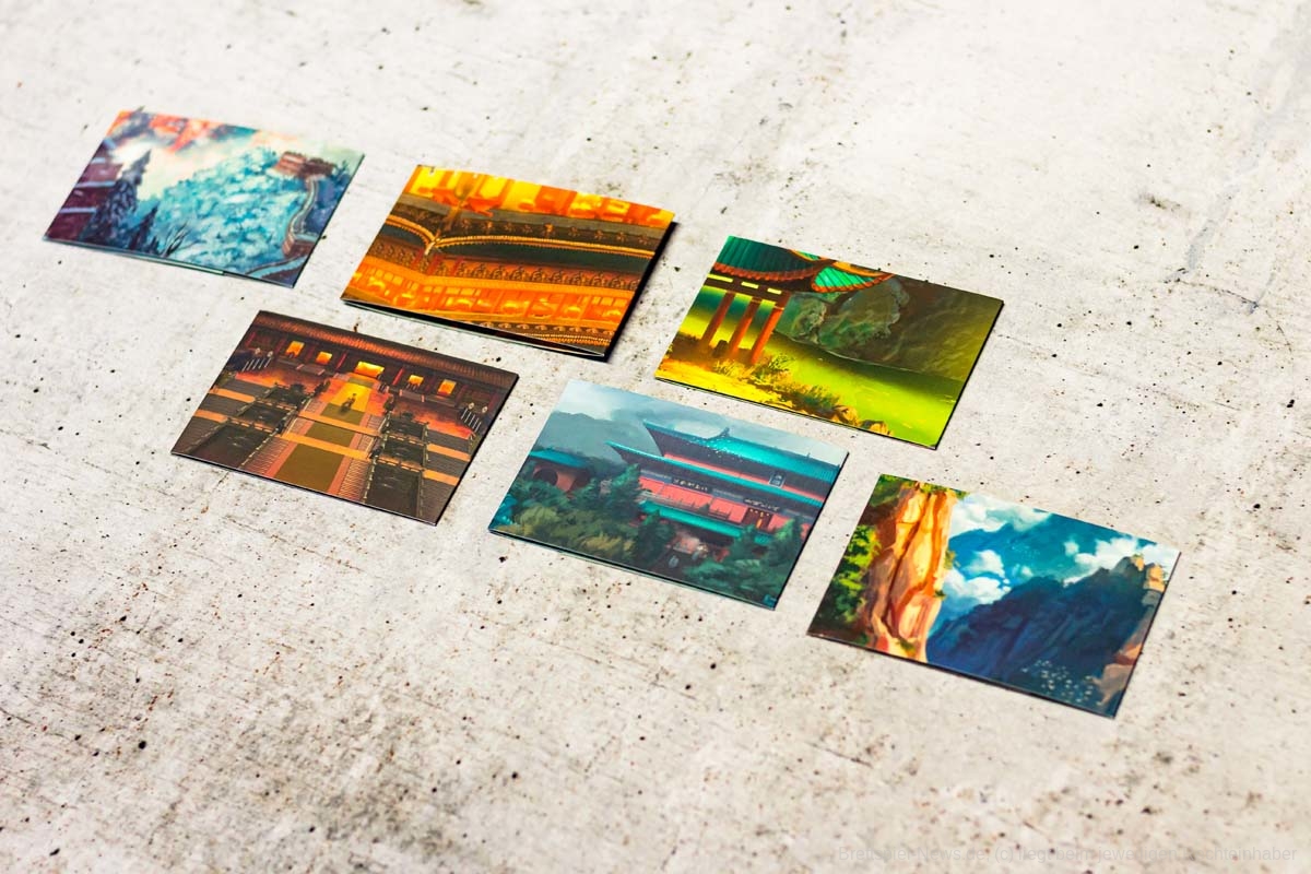 Die verteilten Palastkarten können von ihren Besitzer:innen auf bis zu zwei Paläste verteilt werden. Es gibt sechs unterschiedliche Motive. Ein Palast kann bis zu acht Karten groß sein. Je mehr unterschiedliche Motive er dabei enthält, desto mehr Energie und Prestigepunkte liefert er, wenn er eingetauscht wird.