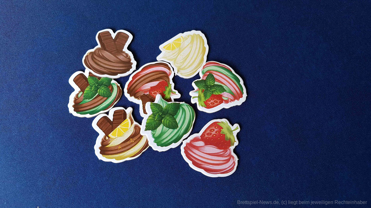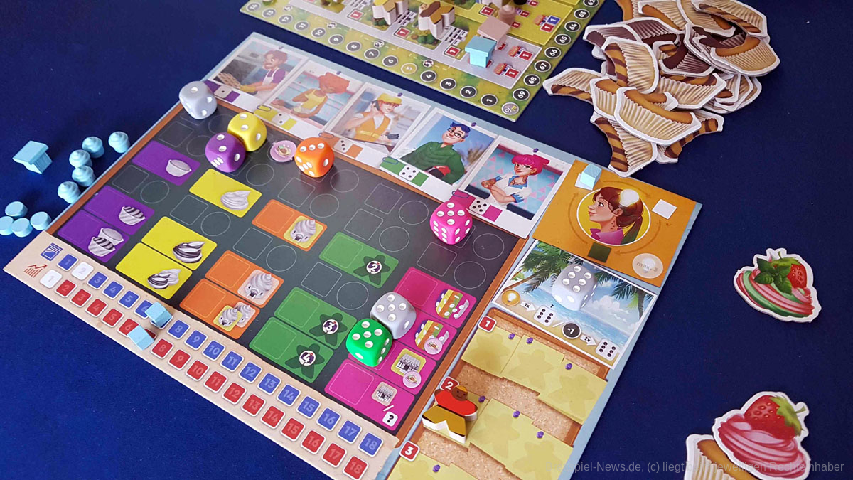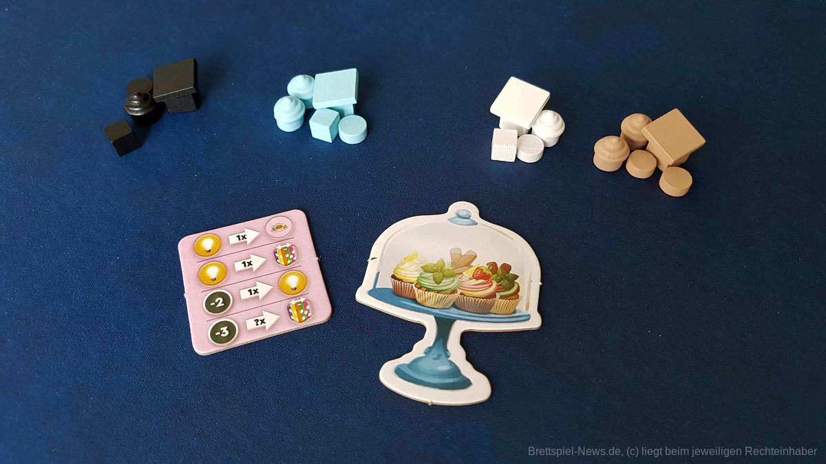 Als Topping oben drauf kommt ein einzigartiger Würfel-Einsetz-Mechanismus, der durch seine Einfachheit einen schnellen Spielfluss garantiert und die Kontrahenten immer wieder vor schwere Entscheidungen stellt. Allerdings kann es vorkommen, dass Ungeübte anfangs die Funktionsweise der Spezialisten-Würfel nicht ganz nachvollziehen können, da dies etwas unintuitiv ist. Nach einigen Runden legt sich das aber und die Aktionswahl wird einfacher. Obwohl bei CUPCAKE EMPIRE viel gewürfelt wird, bietet das Spiel in aller Regel genügend Alternativen, sodass es selten vorkommt, dass jemand keinen gewinnbringenden Zug ausführen kann.