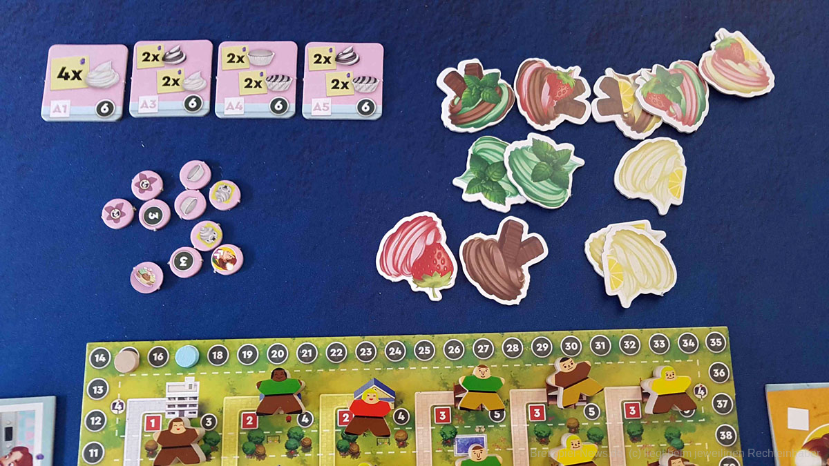 Eine der größten Stärken von CUPCAKE EMPIRE ist die stimmige Verquirlung des unverbrauchten Themas und der neuartigen Mechanik. Es gelingt dem Spiel, dass alle den Eindruck haben, gerade an neuen Rezepten für sagenhaftes Süßgebäck zu tüfteln und dadurch Stück für Stück ihr Wirtschaftsimperium auszubauen. Dabei darf gerne über den ein oder anderen Logikfehler hinweggesehen werden. Wir sind ja hier immer noch beim Spielen!