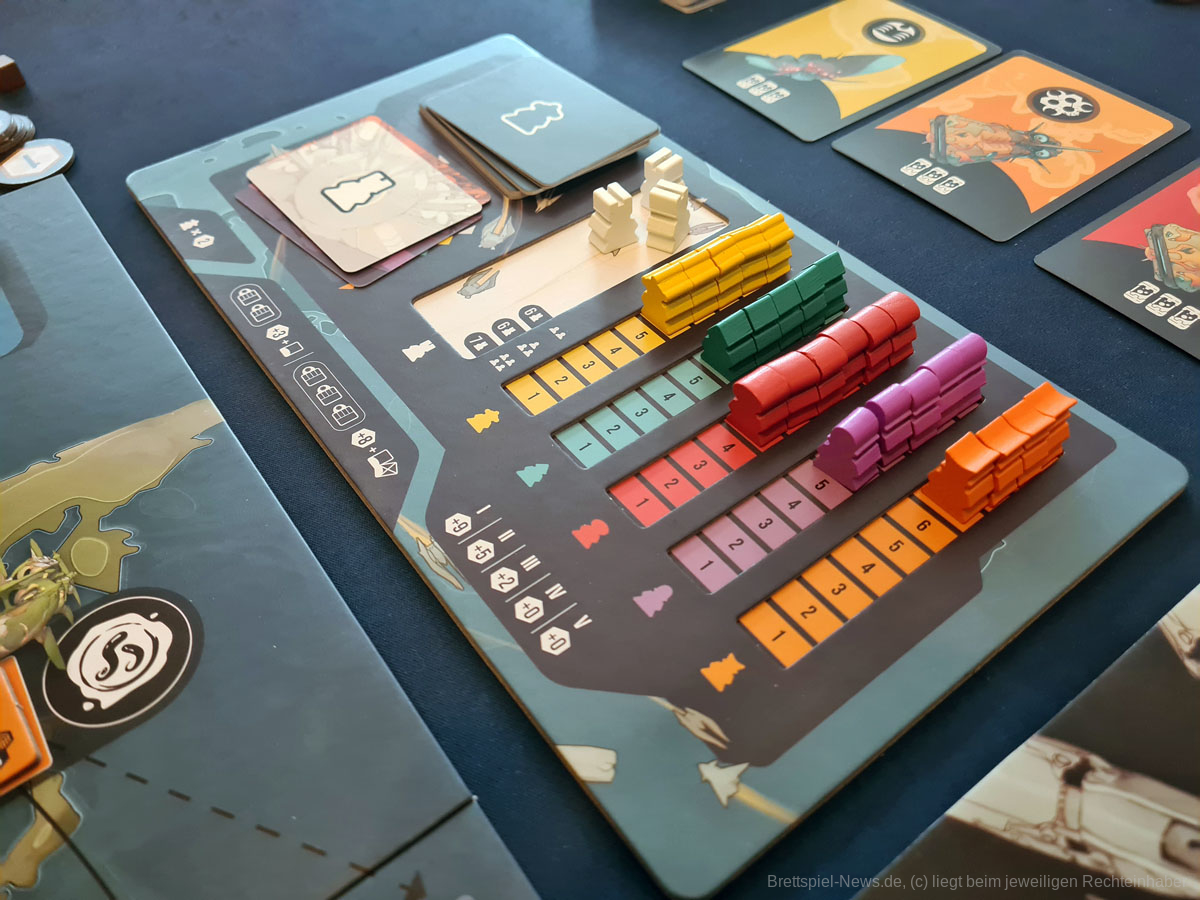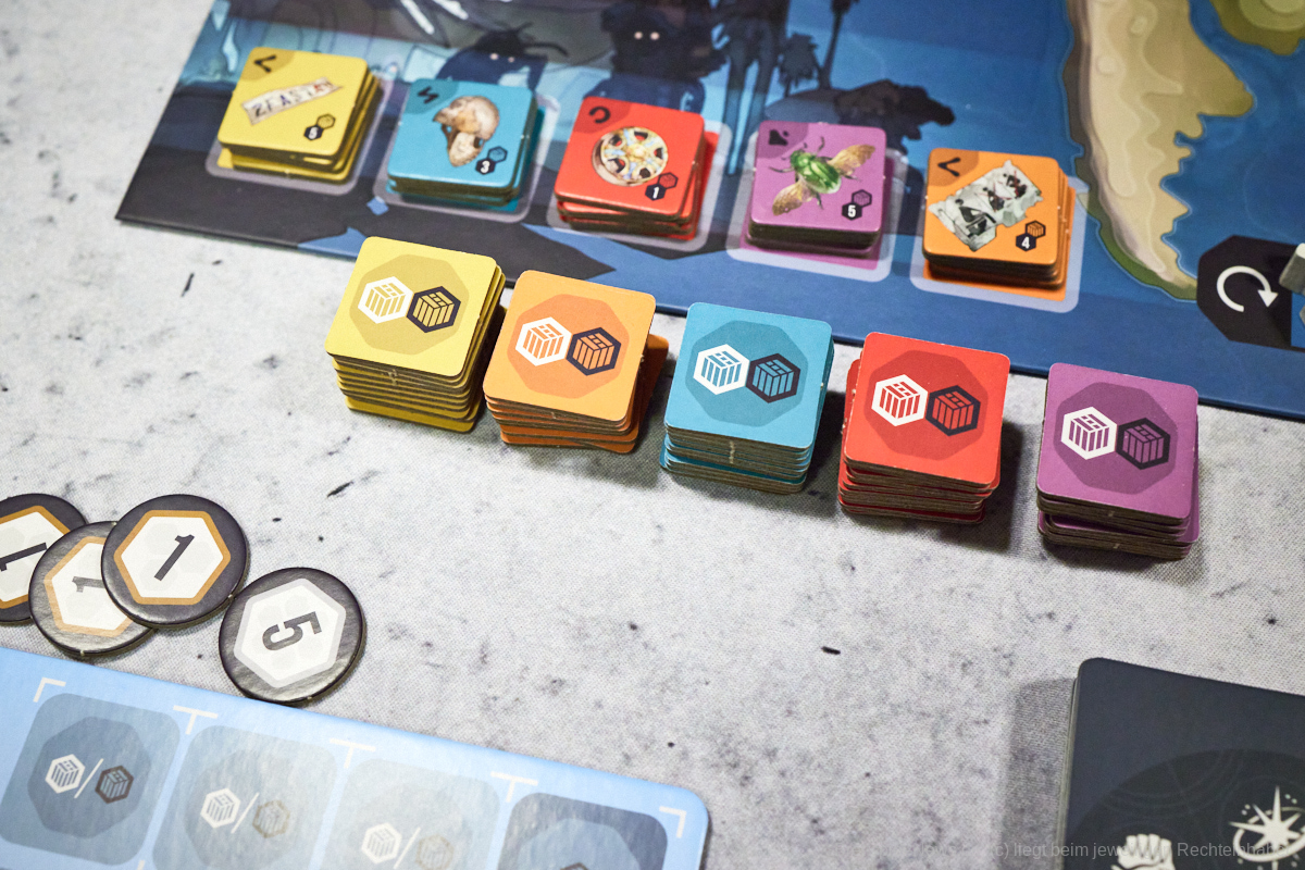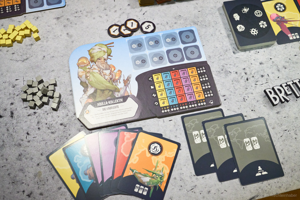 Ein „einfach drauf los“ gibt es in EXCAVATION EARTH nicht. Zusätzlich sind Spielende im Vorteil, die ihre meist sehr mächtigen Volksfähigkeiten richtig einzusetzen wissen. Einen wirklichen Ausgleich des Spielniveaus zwischen Neuling und Profi gibt es damit nicht. Erschwerend kommt hinzu, dass EXCAVATION EARTH über einen kleineren Glücksfaktor verfügt, der in die Planungen eingebunden werden muss. Ziehen Spielende nämlich nicht die Karten, die sie für die Umsetzung eines Plans benötigen, dann haben sie Pech gehabt und müssen schnell zu Plan B rüber schwenken, den sie dann hoffentlich schon vorbereitet haben. Zwar wird dies durch ein kleines Kartendrafting am Anfang einer Spielrunde ein wenig ausgeglichen, dennoch kann es passieren, dass Spielende keine Handlungsmöglichkeiten durch die gezogenen Handkarten besitzen.