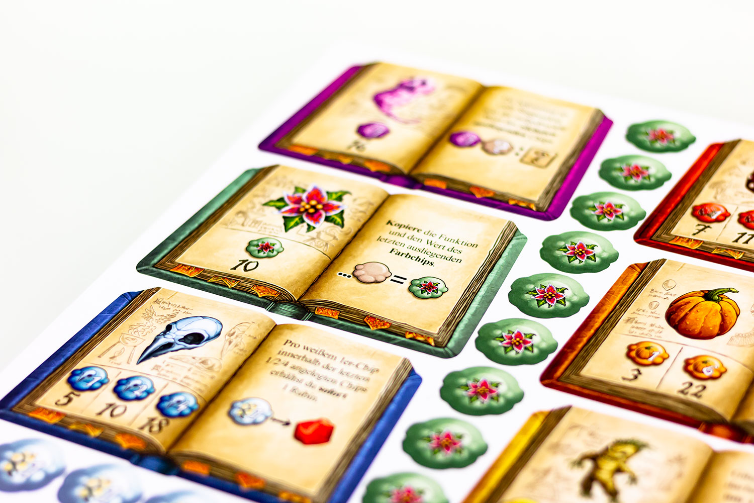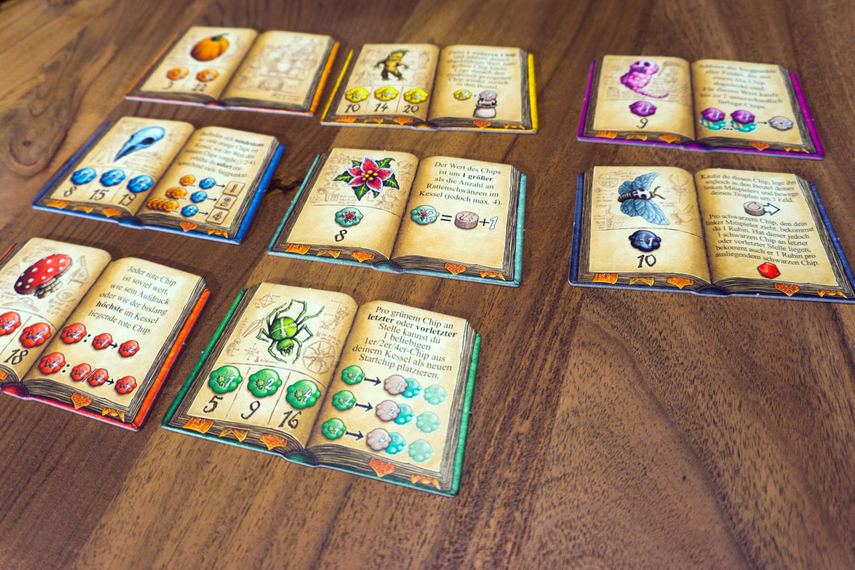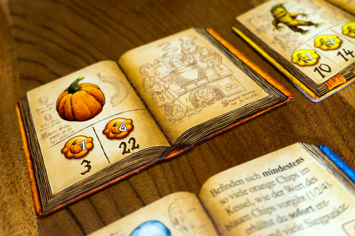 Zuletzt seien noch die neuen Zutatenbücher erwähnt, die durchaus mehr Flexibilität in das Spiel bringen. Neue Sets können zusammengestellt und ausprobiert werden. Dadurch ähnelt keine Runde der vorherigen und es entstehen immer neue Taktiken. Als wichtige neue Zutat ist der Kürbis mit dem 6er Wert hinzugekommen. Dieser soll das Erreichen des Kesselendes erleichtern.