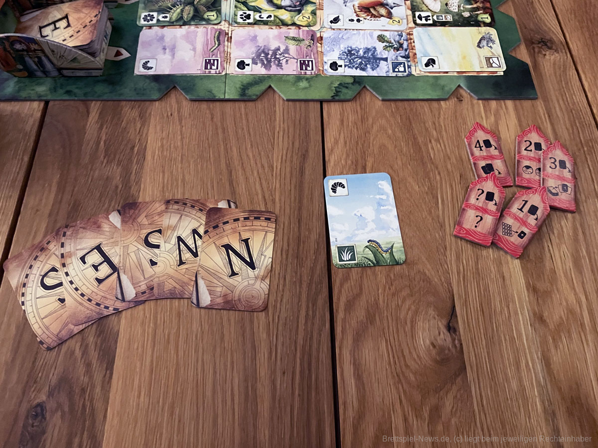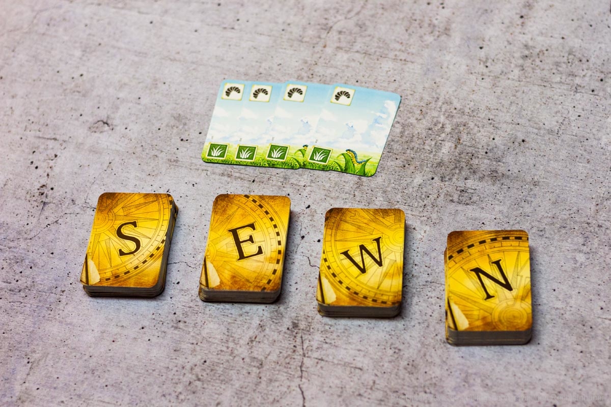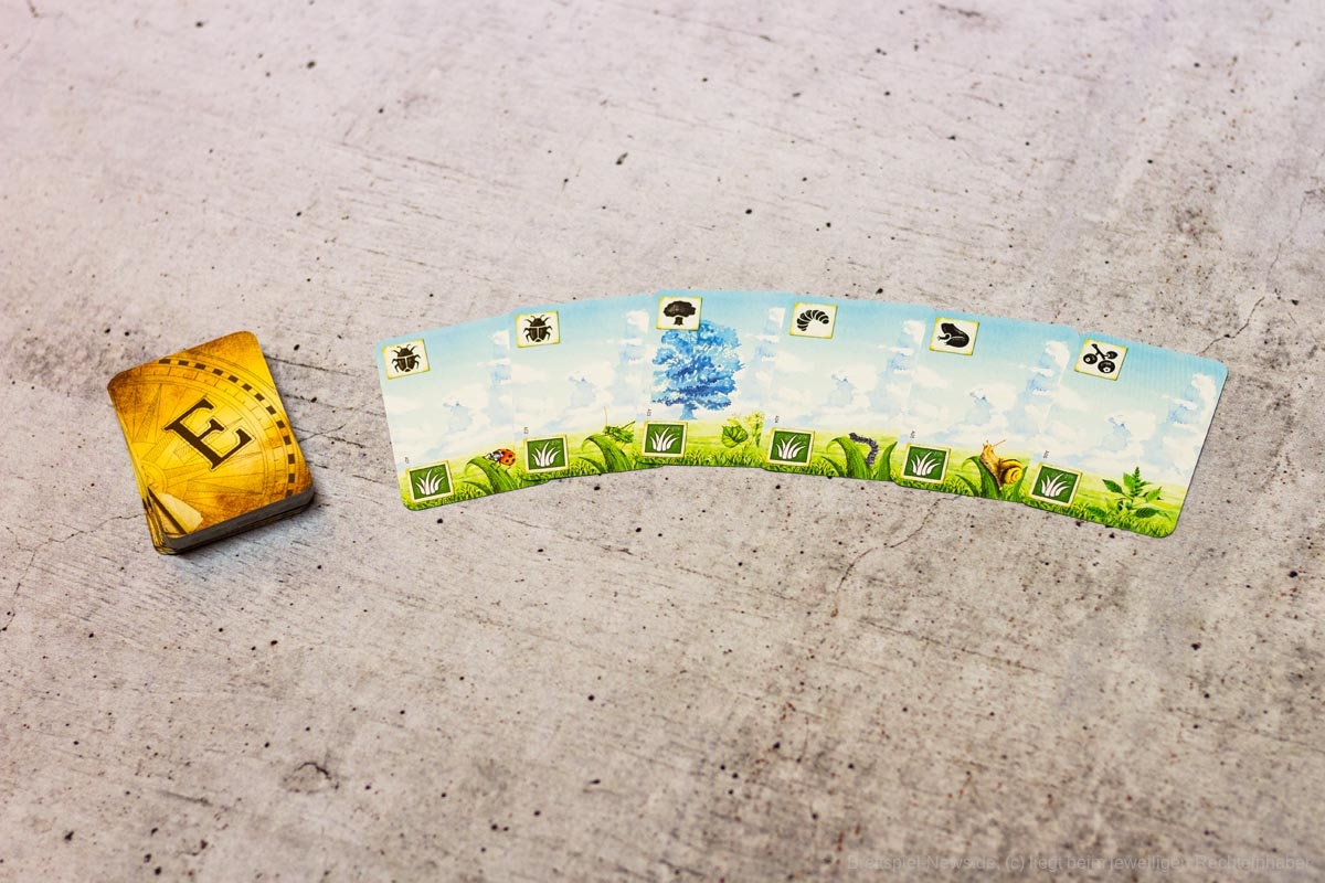Zugegeben, MEADOW ist an uns lange Zeit vorübergegangen. Das Cover, so schön es tatsächlich ist, wirkte auf uns etwas altbacken, fast schon wie ein Kinderspiel. Der Spielablauf, der im Kern daraus besteht, eine Karte zu nehmen und eine Karte auszuspielen, klingt auch nicht sonderlich spannend. Unsere Testrunden zeigten aber, dass MEADOW ein wirklich gelungenes Spiel ist, dessen Komplexität sich irgendwo zwischen Familienspiel und Kennerspiel einpendelt. Der Mechanismus des Kartennehmens aus einem Raster existiert zwar in ähnlicher Weise in Spielen wie QUADROPOLIS und CAT LADY, ist aber für uns noch lange nicht verbraucht. Da im Verlauf einer Runde die Optionen in der Auslage durch gegnerische Marker zunehmend blockiert werden, muss vor allem an dieser Stelle taktiert werden. Ein Blick in die Auslagen der Konkurrenz kann sich lohnen, sodass wichtige Karten für die eigene Auslage gesichert und die für andere möglicherweise blockiert werden können.