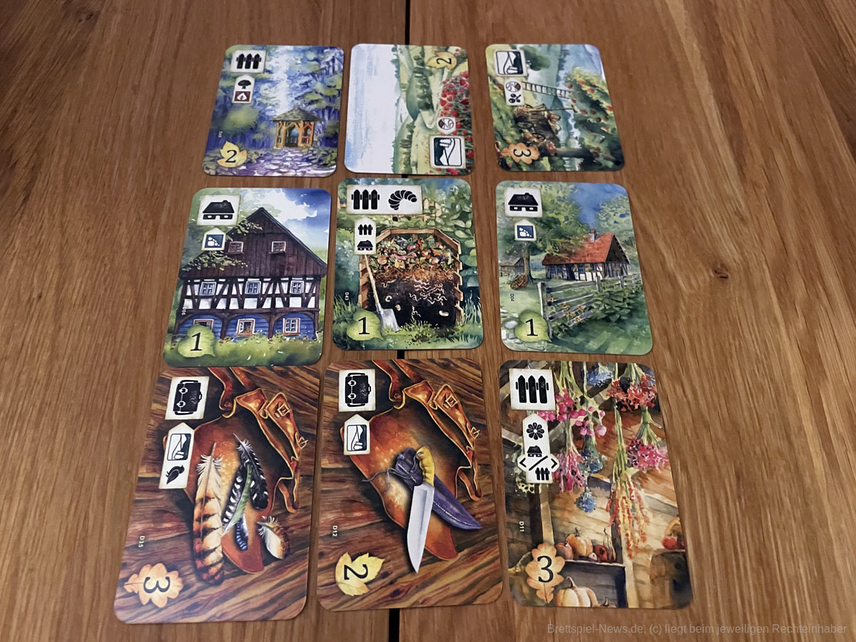 Das Managen der eigenen Auslage wird kniffliger, je weiter die Partie voranschreitet, da die Voraussetzungen zum Ausspielen der Karten steigen und Symbole, welche in der eigenen Auslage durch andere Karten abgedeckt wurden, nicht mehr zur Erfüllung dieser Voraussetzungen zur Verfügung stehen.