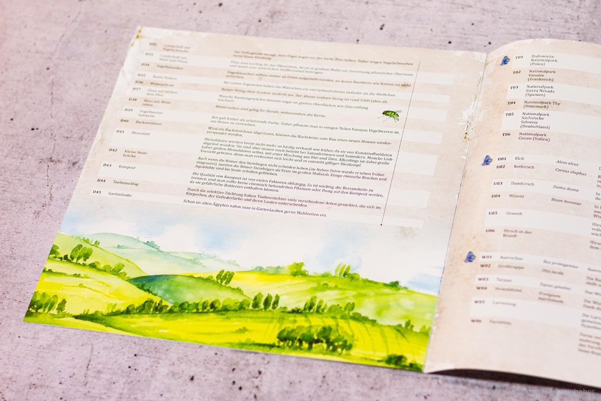 Ein großes Lob gilt der grafischen Gestaltung des Spiels, die sich qualitativ nicht hinter Spielen wie FLÜGELSCHLAG verstecken muss. Die Spielschachtel wirkt zwar, wie erwähnt, ein wenig altbacken, dies mindert die Qualität des Designs allerdings in keiner Weise.