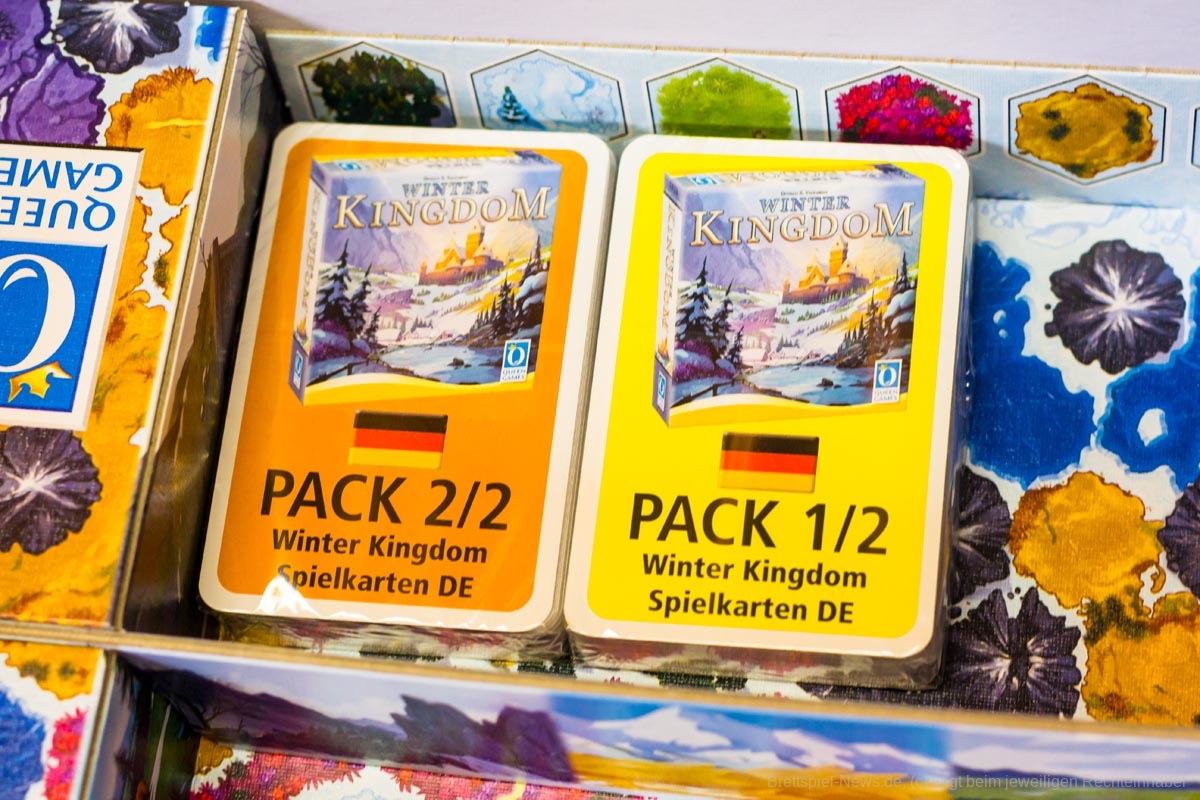 Mit WINTER KINGDOM ist es gelungen, eine schöne Re-Implementierung des ursprünglichen Spiels KINGDOM BUILDER zu erschaffen. Vor allem die Mechanik, allen Personen zu Spielbeginn fünf Fähigkeitskarten auszuteilen, räumt mit einer Schwäche des alten Spiels auf. Dort schafften es nur die Schnellsten, an die wenigen begehrten Sonderplättchen zu gelangen, die auf dem Spielfeld auslagen. Waren sie vergeben, hatte niemand mehr die Chance, die Schnelleren einzuholen, weil diese bei jedem Zug mehr eigene Häuser setzen durften als diejenigen, die zu „langsam“ waren bzw. nie das Glück hatten, die passenden Geländekarten zu ziehen, um an die Sonderplättchen zu gelangen.