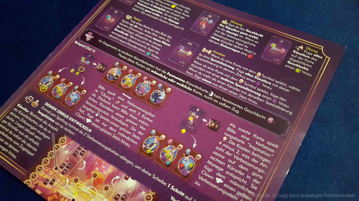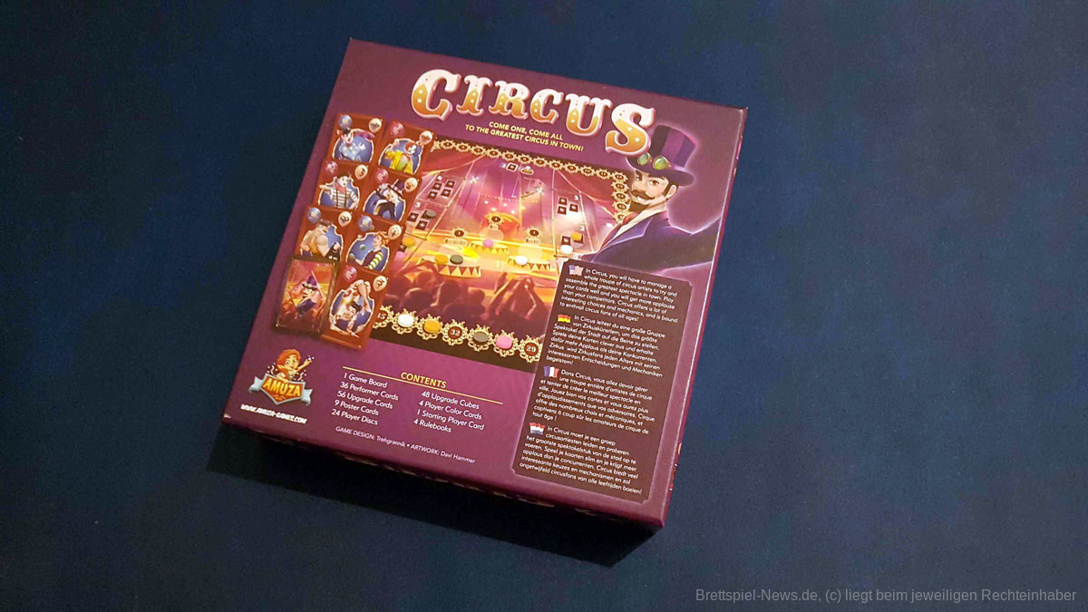 Positiv hervorzuheben ist die kurze Spieldauer. Im Grundspiel dauert eine Partie selten länger als die kolportierten 20 Minuten. In voller Besetzung im Modus für Fortgeschrittene kann CIRCUS allerdings wesentlich länger dauern.