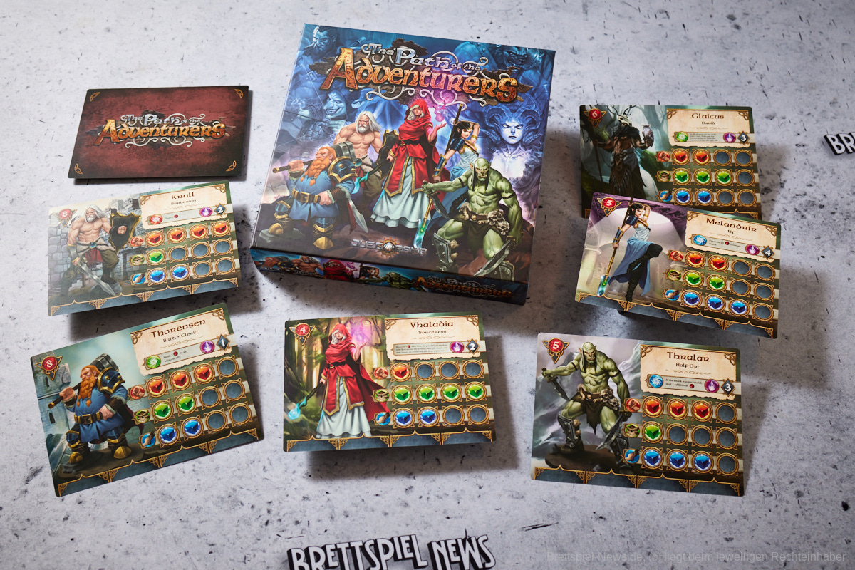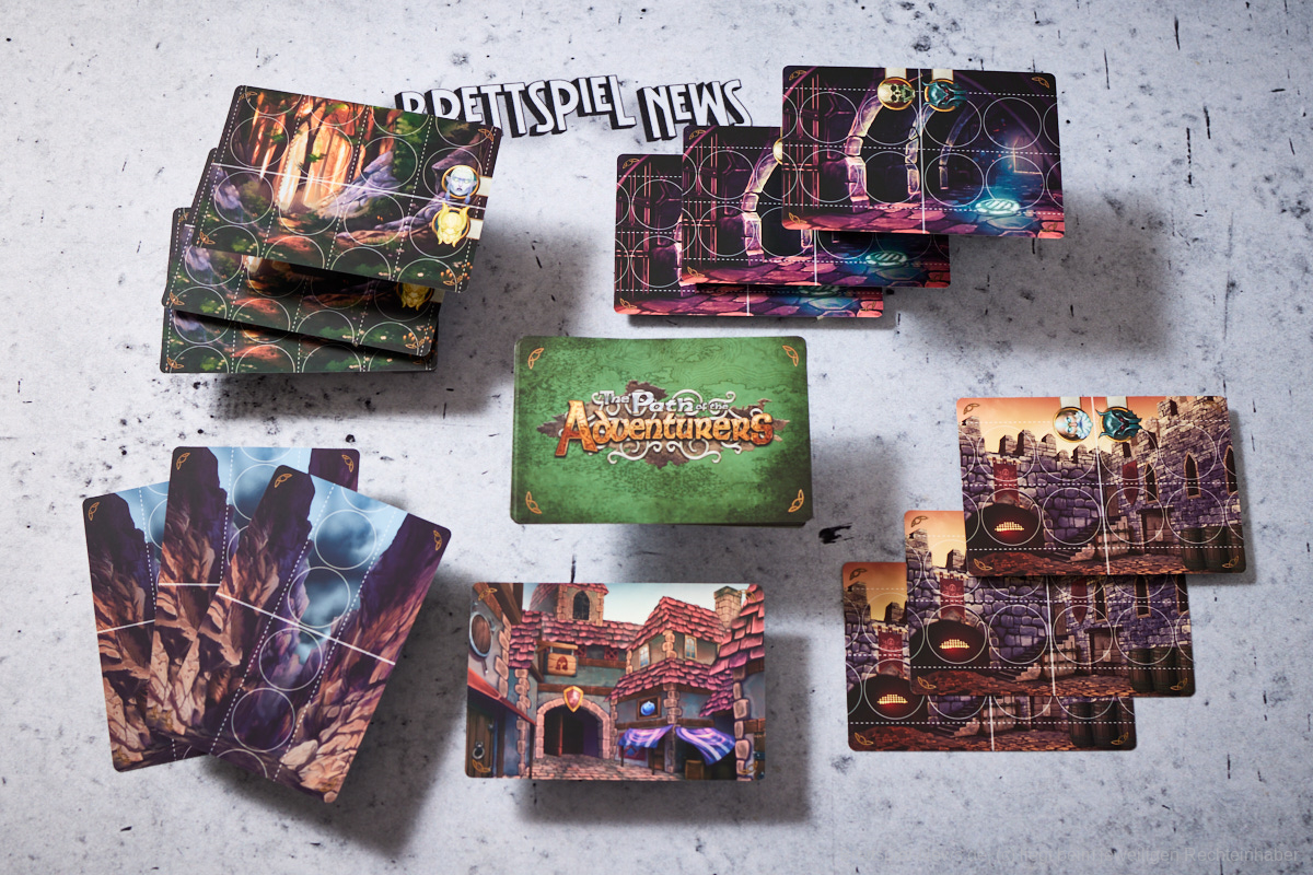 Die meisten Brettspiele aus dem Dungeoncrawler-Genre besitzen für gewöhnlich riesige Spielfelder, die teilweise schon größer sind als die handelsüblichen Esszimmertische der Spielgruppen. Selten brechen Spiele aus diesem Muster aus, da hier ja auch klare Vorteile in der Spielvariation liegen, aber dennoch sind mit Sicherheit nicht alle damit zufrieden, geschweige denn, dass sie sich ständig größere Tische anschaffen möchten. THE PATH OF THE ADVENTURERS versucht diese Problematik mit einem frischen Kartensystem anzugehen, während es noch die eine oder andere Neuerung im Gepäck hat. Aber was genau heißt das eigentlich?
