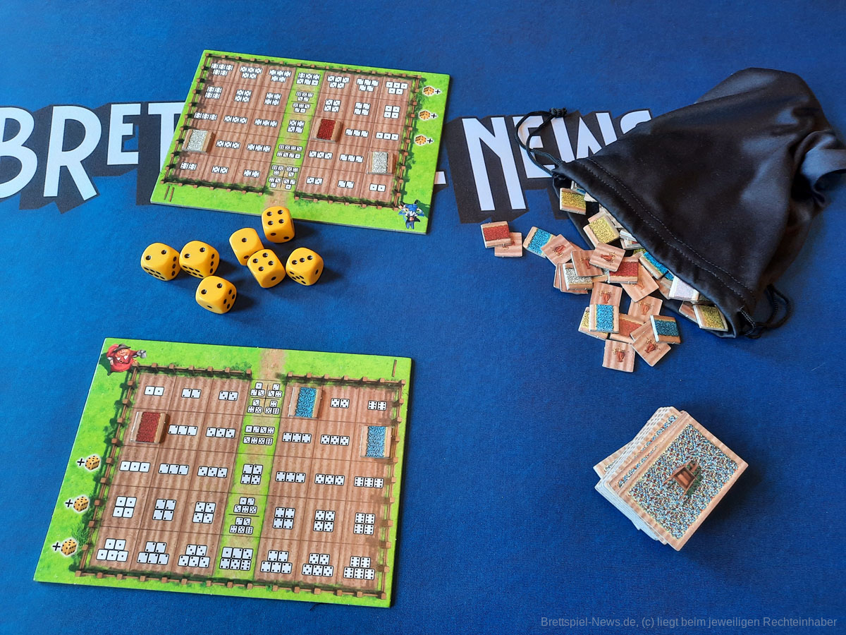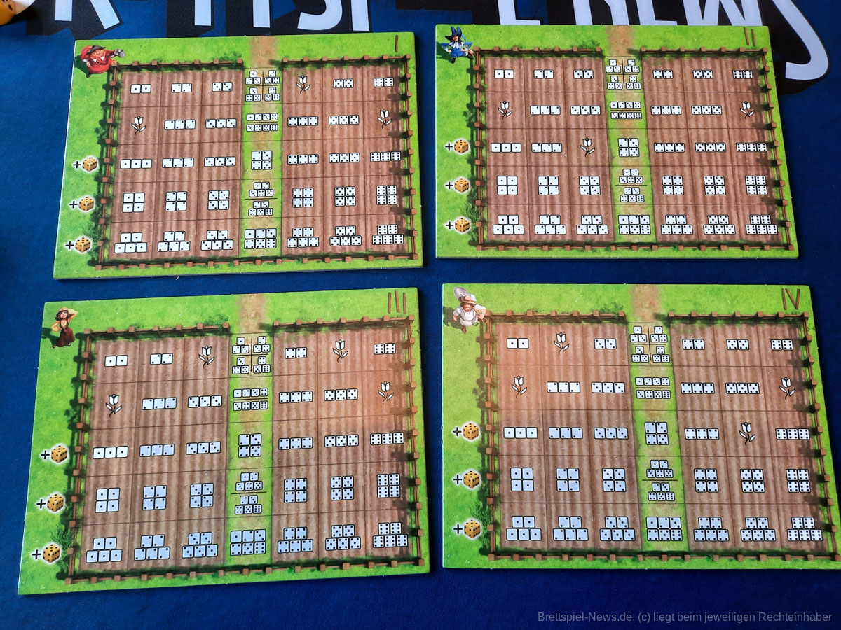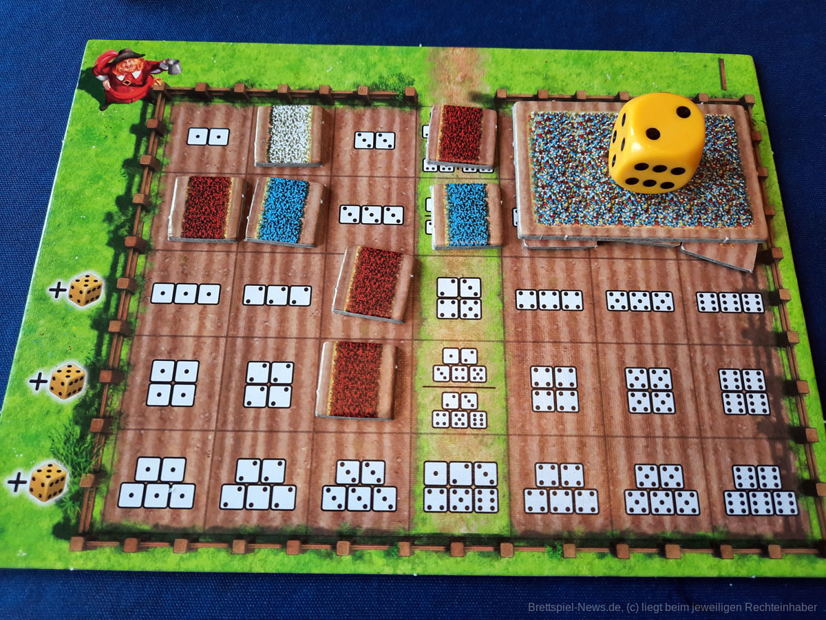 Es werden einfach die Züge hin und her gepasst und gewürfelt. Das ganze Spiel über frage ich mich „Was soll ich hier denn eigentlich tun?“ Es hat mich an das Ende von MACHI KORO LEGACY erinnert, welches ähnlich katastrophal war. Alle würfeln, bis eine Person Glück hatte und das Spiel gewinnt. Genau so läuft es hier. Am Anfang gibt es ein scheinbar nicht enden wollendes Aufbauen der Felder, bis alle ein paar Extrawürfel und ein Bonusplättchen haben und dann gehts hin und her. Spannend wie eine Partie Ping Pong, allein, ohne Ball.