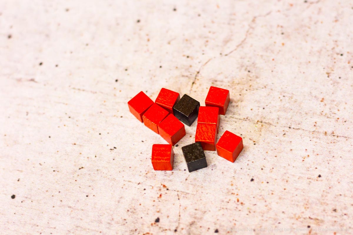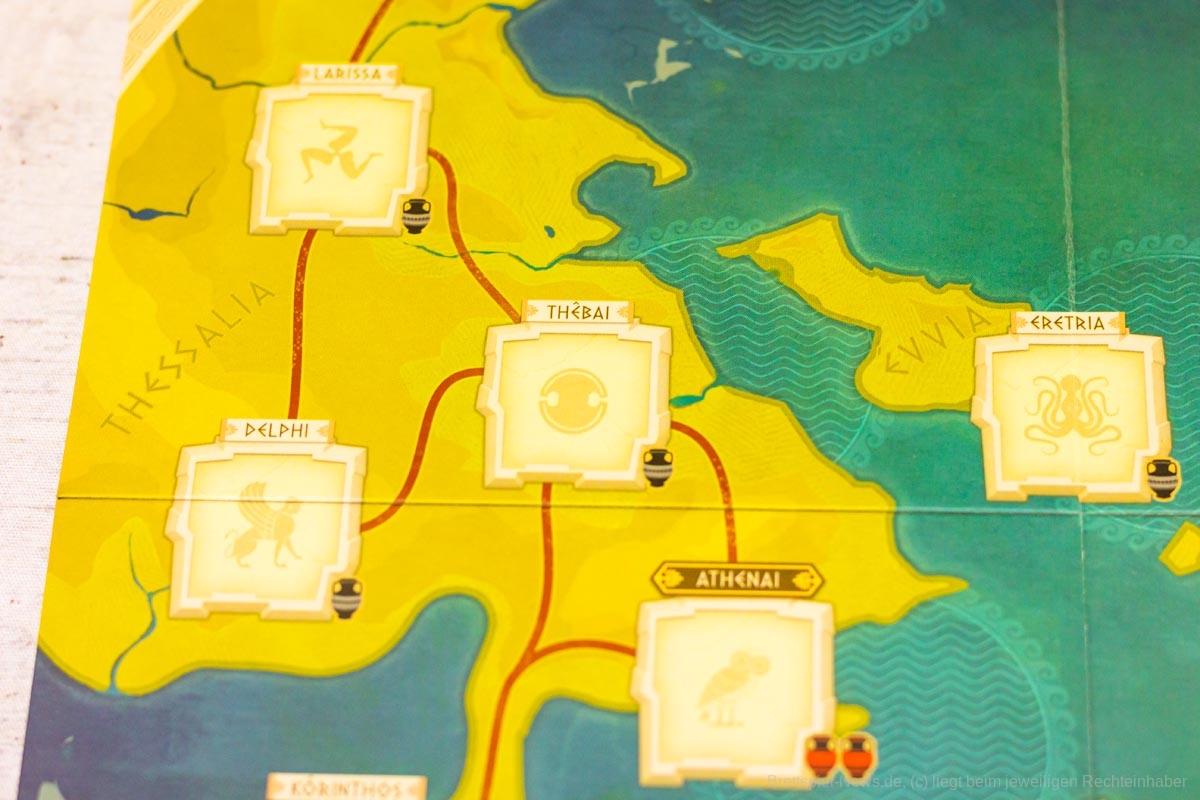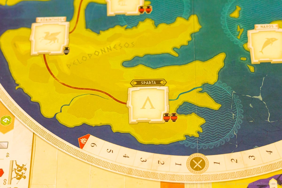 Ein weiteres Problem ist der Kampfmechanismus. Dass die griechische Streitmacht auf eigenem Boden einen Vorteil hat, mag historisch richtig und sinnvoll sein, bei einem ohnehin glückslastigen Kampfsystem wächst sich das aber sehr schnell zu Frust aus, denn aufgrund der Maximalkampfkraft der Perser von 4 Würfelaugen bedeutet eine 5 oder eine 6 der Griechen den unabwendbaren Verlust einer eigenen Einheit. Bei einer 4 erreicht Persien maximal ein Unentschieden, was zu einem beidseitigen Einheitenverlust führt. Zugegeben, Persien kann deutlich mehr Einheiten aufs Spielfeld bringen. Das ließe sich als Gegengewicht zu diesem Nachteil verstehen. Aufgrund der Einschränkungen bei der Bewegung der Einheiten und der begrenzten Aktionszahl greift dies nach unserer Auffassung jedoch nicht durch. Der Ausgang des Spiels wird daher zu oft vom Glück bestimmt.