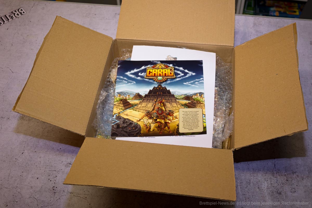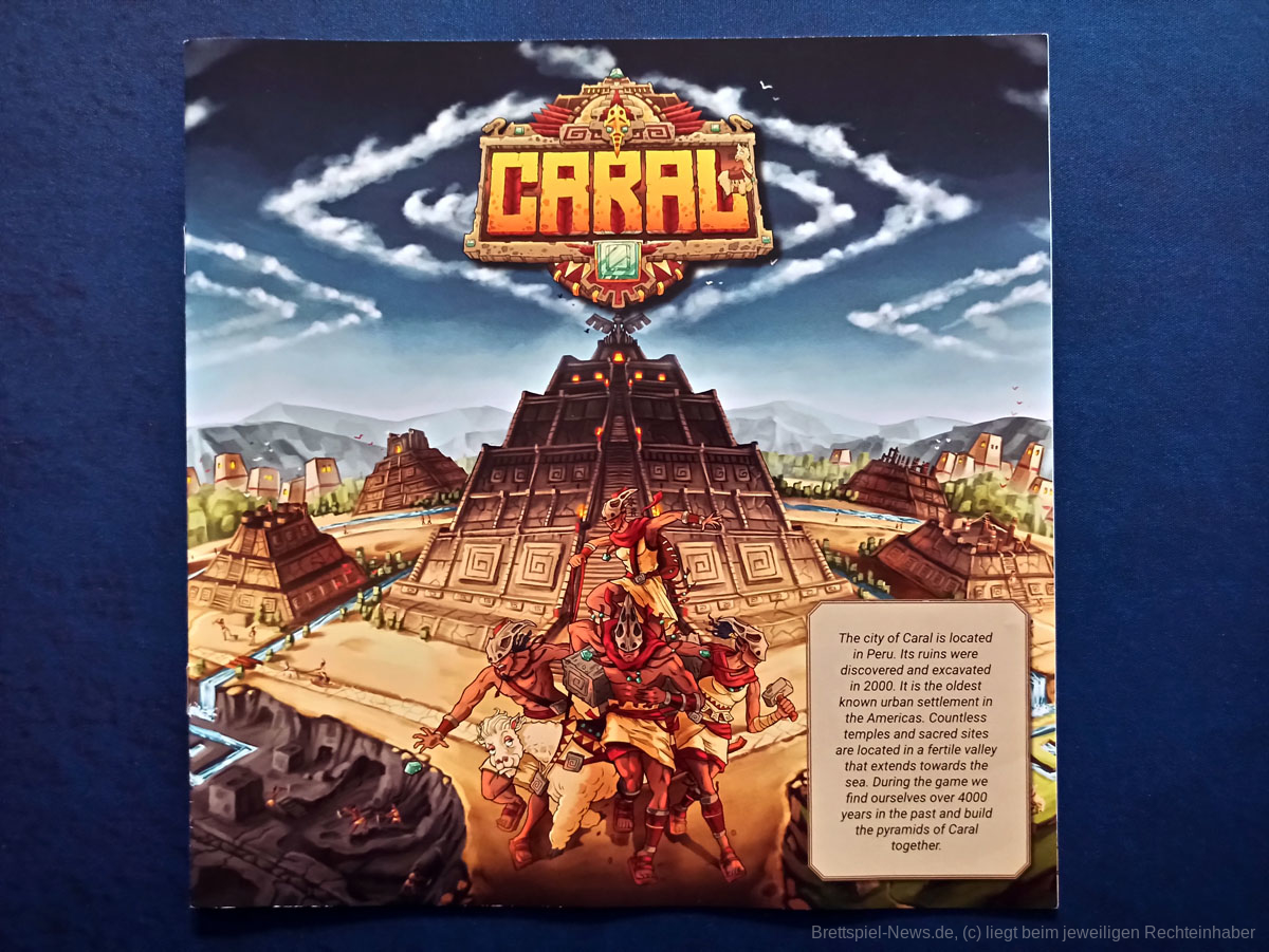 CARAL wirkt auf den ersten Blick wie ein klassisches Familienspiel. Die Spielfiguren bewegen sich auf einem Pfad und können dabei verschiedene Aktionen ausführen. Die Optik ist nicht reißerisch, oder übermäßig bunt, sie passt gut zum Thema, welches insgesamt gut umgesetzt wurde. Langsam wachsen die Pyramiden beeindruckend in die Höhe, es können mehr Personen in den Steinbruch geschickt werden, wodurch mehr Steine abgebaut werden. Über die Alpakas, die wie Huskys einen Schlitten ziehen, mussten wir schmunzeln.