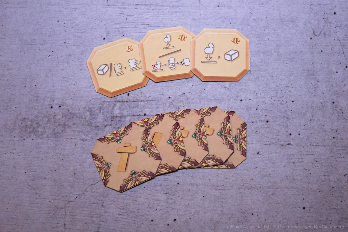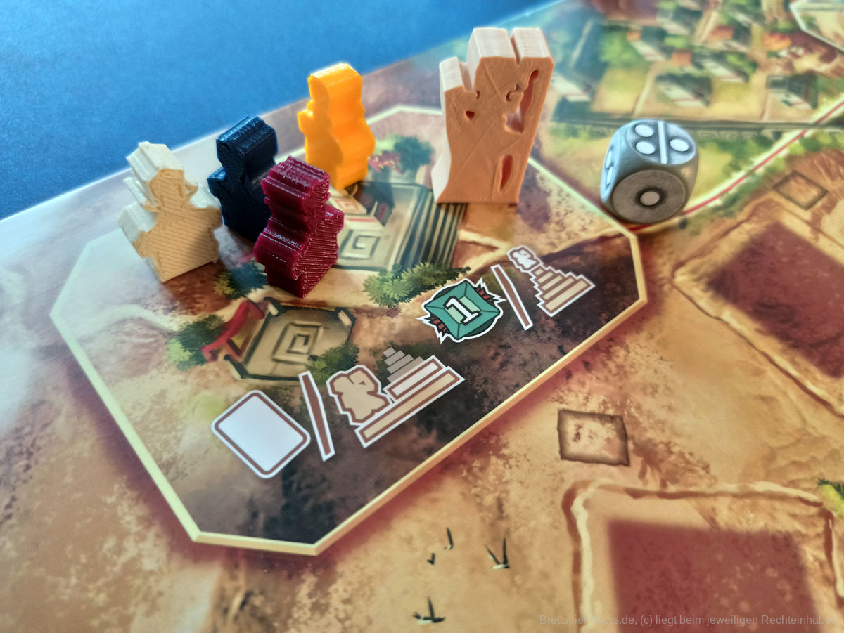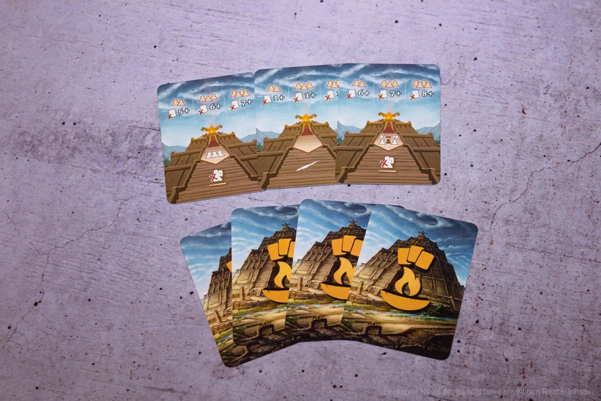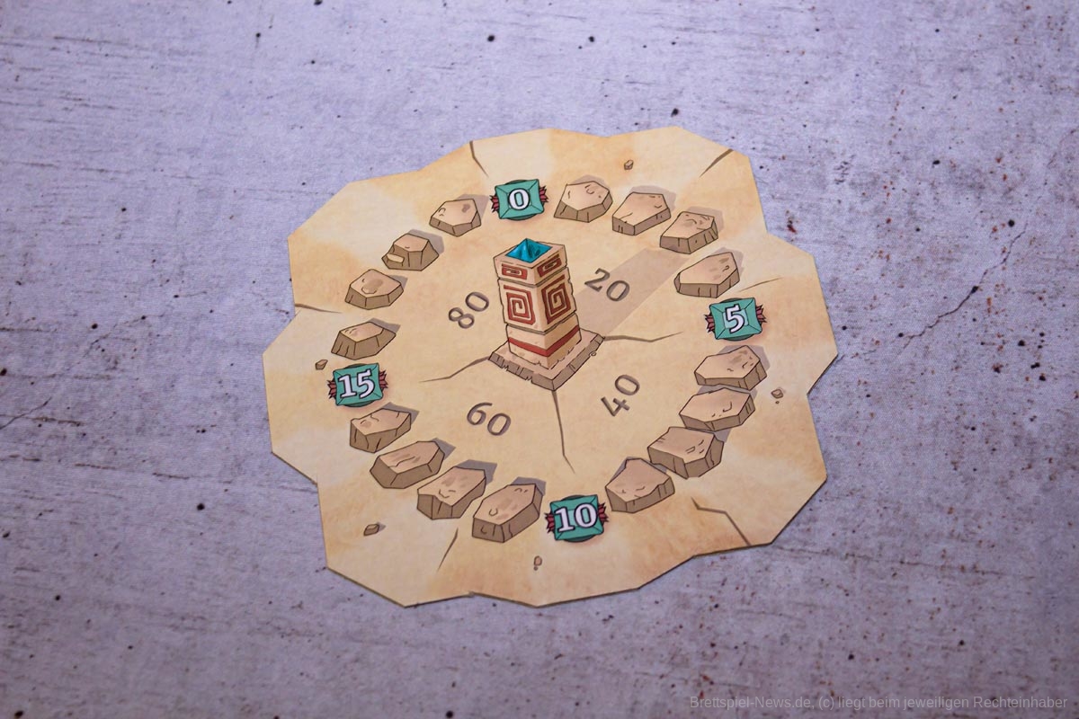 Sehr wichtig ist es, die Aktionen der „Konkurrenten“ genau im Auge zu behalten. Zieht jemand überraschend ins Ziel und löst damit das Rundenende aus, kann dies andere schnell auf dem falschen Fuß erwischen, da beispielsweise noch keine Karten für die Opfergabe gesammelt wurden, oder noch Steine für die nächste Runde benötigt werden.