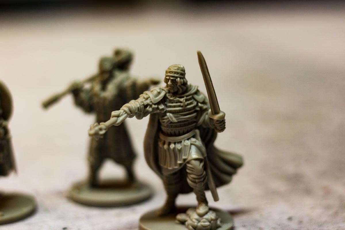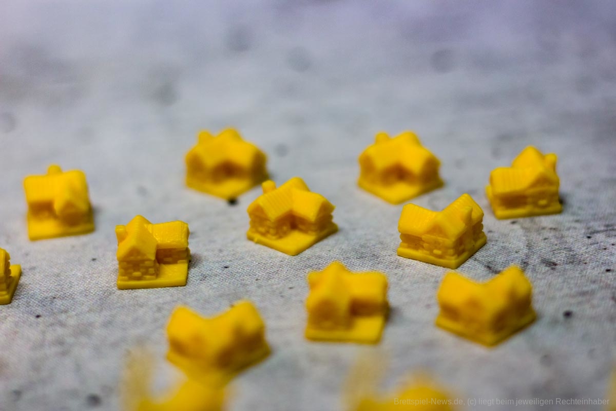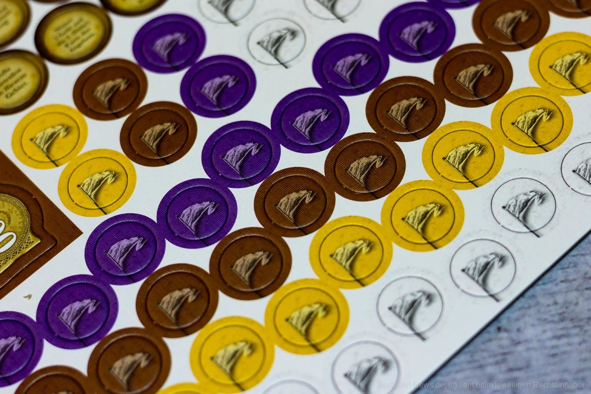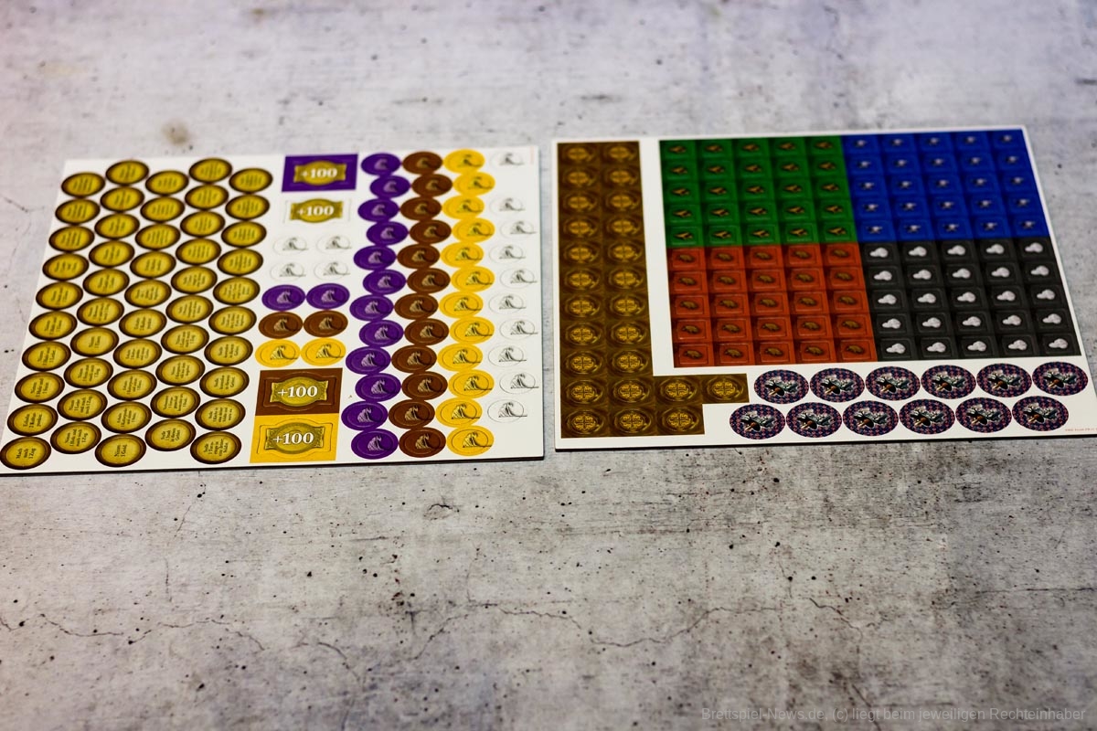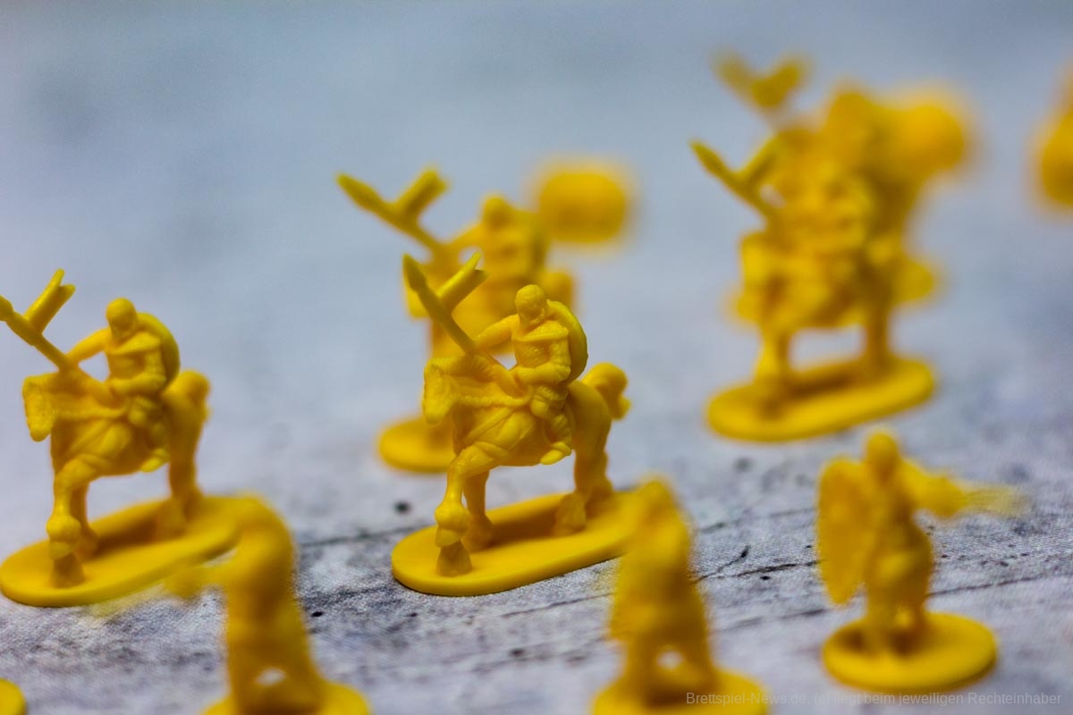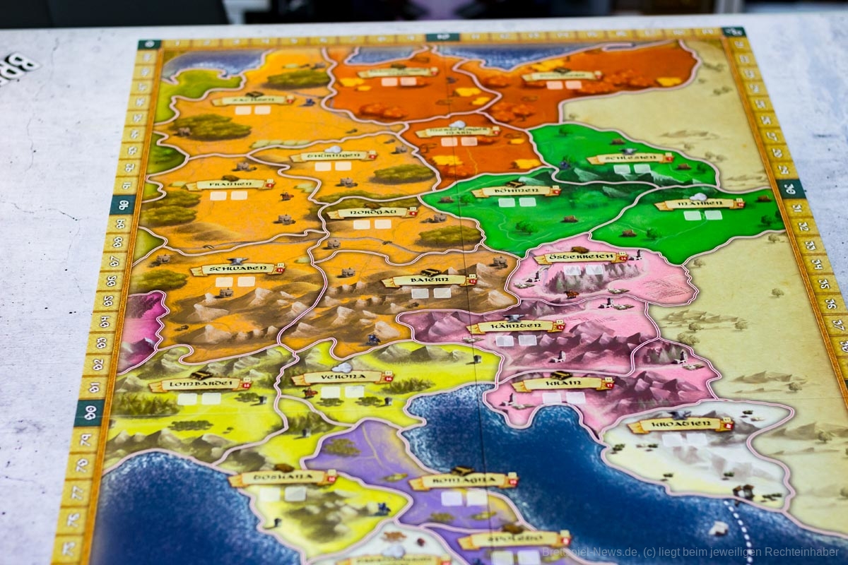 Die Frage, wann setze ich wo eine Scheibe ein, um am besten nur mir selbst Reaktionen zu ermöglichen, erfordern eine Menge Vorausplanung und gutes Timing. Auch das Aufwerten von Fähigkeiten durch das stufenweise Herausschieben von Karten, ist eine clevere Mechanik, die uns schon in anderen Spielen begeisterte und hier sinnvoll eingebunden wird. Kämpfe sind schnell abgehandelt, was das flüssige Spielen zusätzlich fördert. Auch wenn die Auswahl an Aktionsfeldern überschaubar ist, gibt es eine Menge zu tun und abzuwägen. Die Kartenvielfalt ist hoch und die unterschiedlichen Kartentypen gewähren verschiedene Möglichkeiten von Optimierung der Truppen bis hin zum einmaligen Siegpunktgewinn.