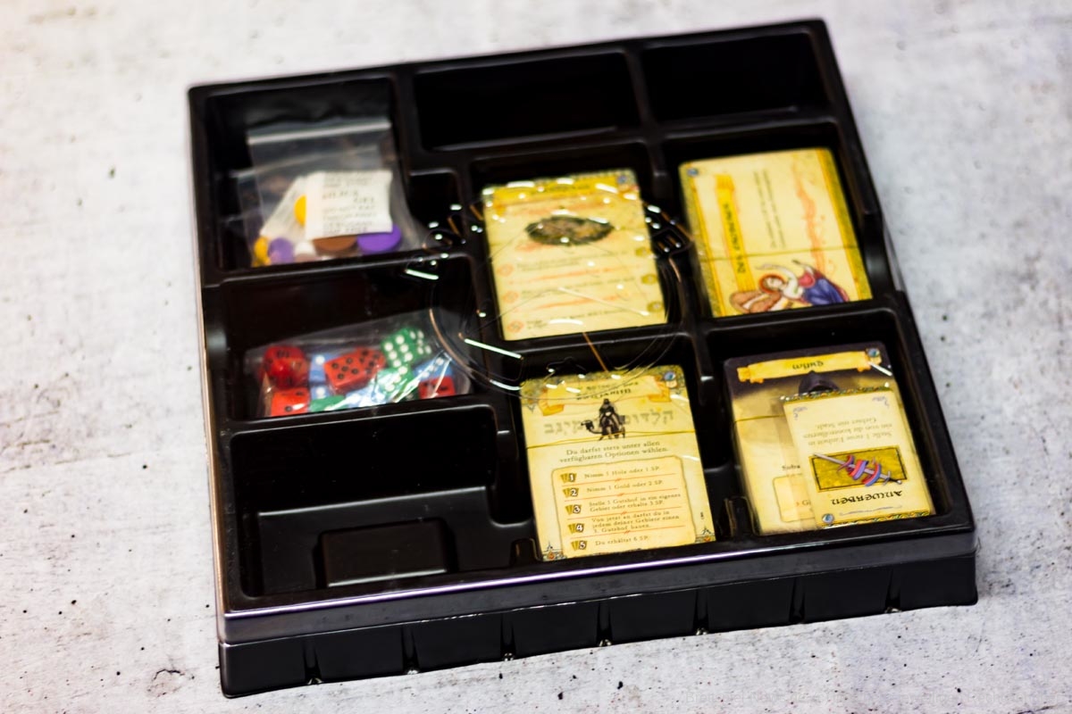 Trotzdem konnte uns Dark Ages nicht komplett überzeugen. Eine Prise Glück darf bei einem guten Spiel nicht fehlen, denn kleine Unkalkulierbarkeiten erzeugen in wichtigen Momenten Spannung. Daher wäre der Glücksfaktor beim Auswürfeln von Kämpfen noch verkraftbar. Die Zufälligkeit der Kartenauslage ist dann aber einfach ein Glückselement zu viel. Mit mehreren Spielern rauschen die Karten teilweise so schnell durch, dass mit ihnen nicht geplant werden kann. Es kam auch vor, dass keine oder kaum Aufrüstungskarten in die Auslage kamen. Außerdem gibt es große Unterschiede in der Stärke der Kartenfähigkeiten und das bereits bei den charaktereigenen Startkarten.