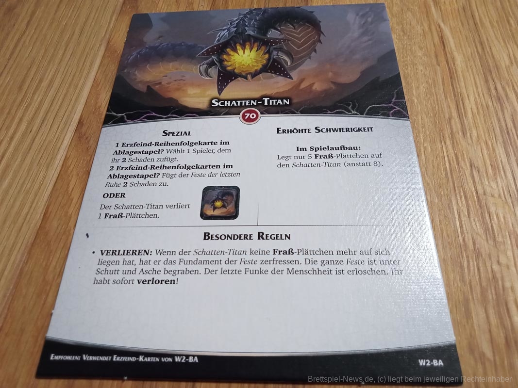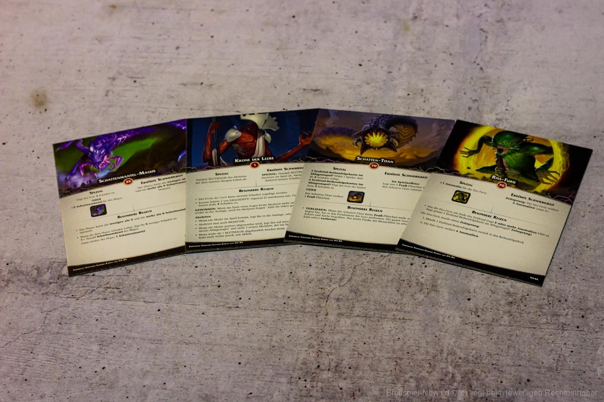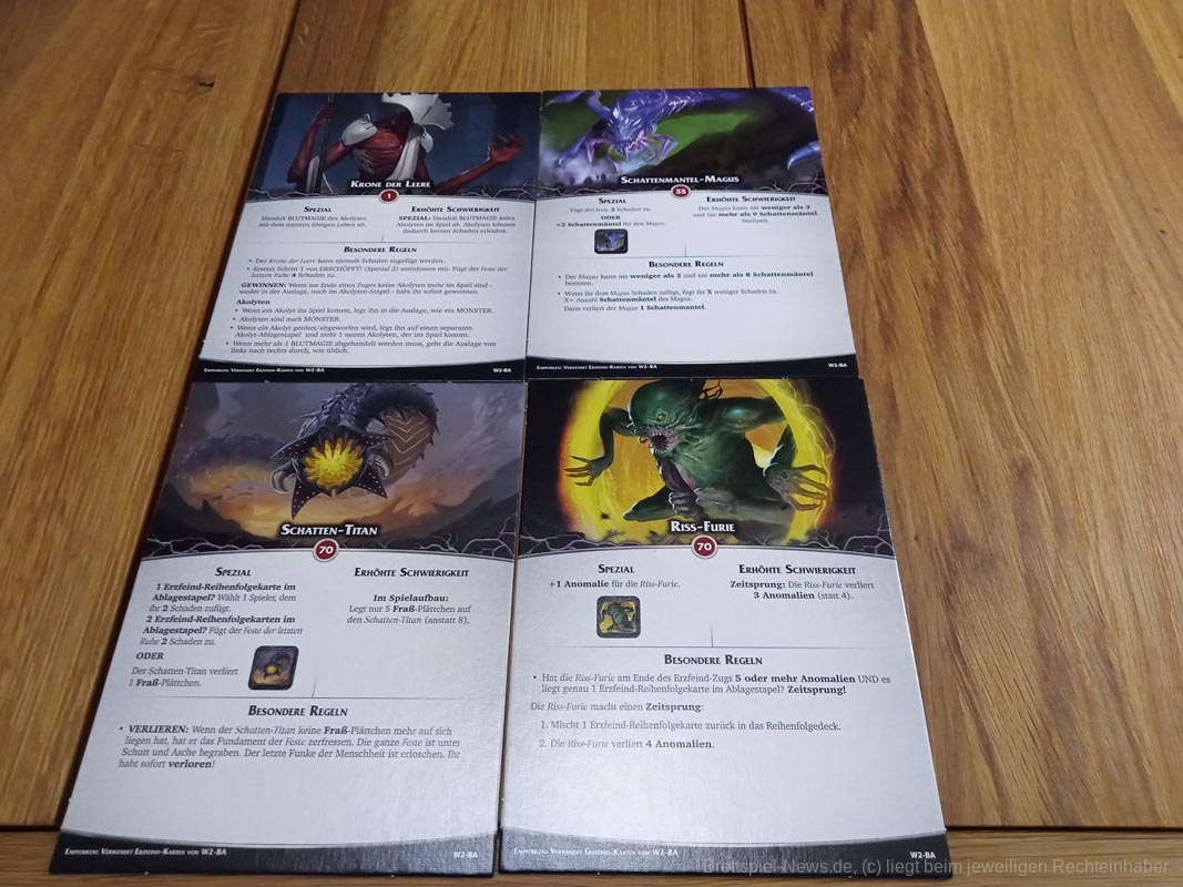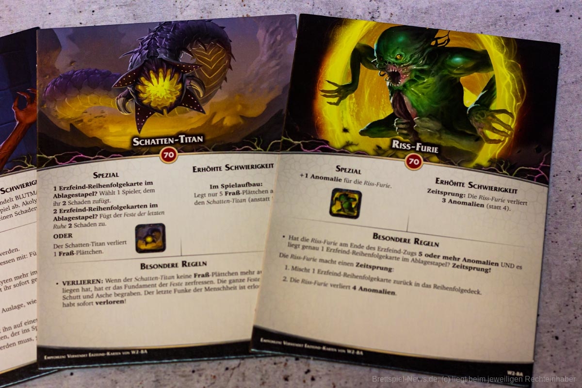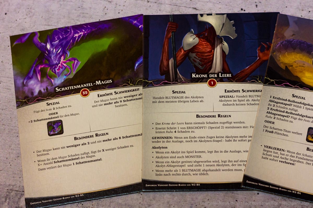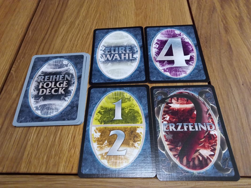 Anschließend wir die nächste Karte des Reihenfolgendecks gezogen. Ist der Erzfeind an der Reihe, so werden bereits ausliegende Karten des Erzfeindstapels von der Neuesten zur Ältesten abgehandelt. Danach wird eine Karte des Erzfeind-Kartenstapels gezogen und das abgebildete Ereignis ausgeführt. Im Stapel des Erzfeindes befinden sich weitere Monster, die es zu bekämpfen gilt, direkte Angriffe des Erzfeindes oder Pläne, die dieser geschmiedet hat und die nach Ablauf mehrerer Runden gravierende Nachteile für das Team bedeuten können.