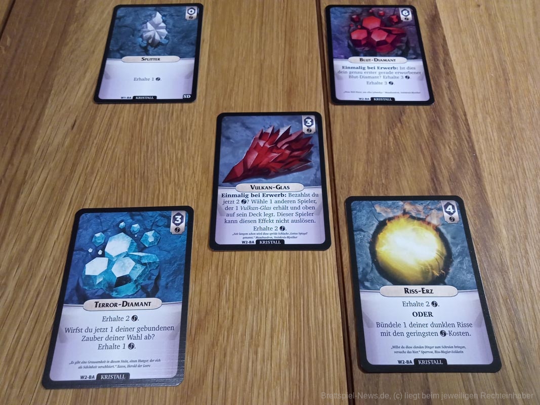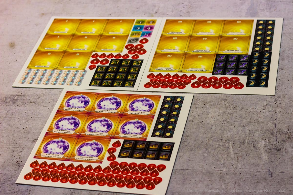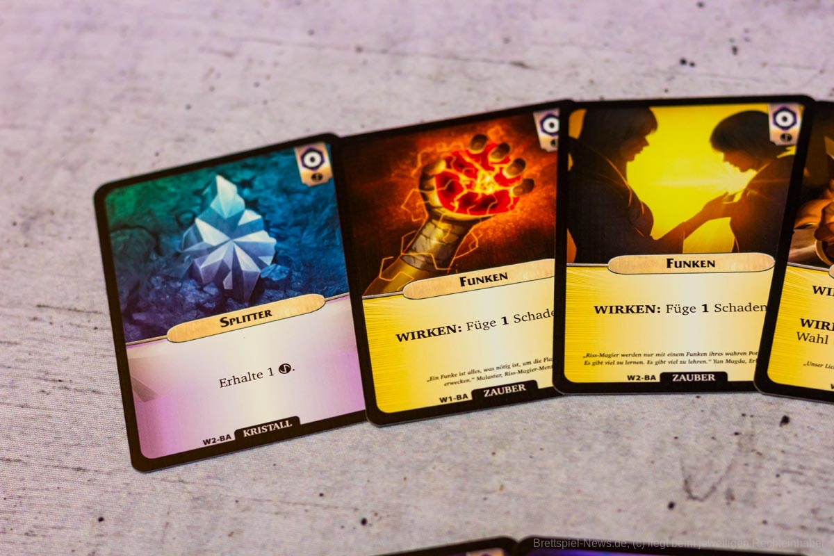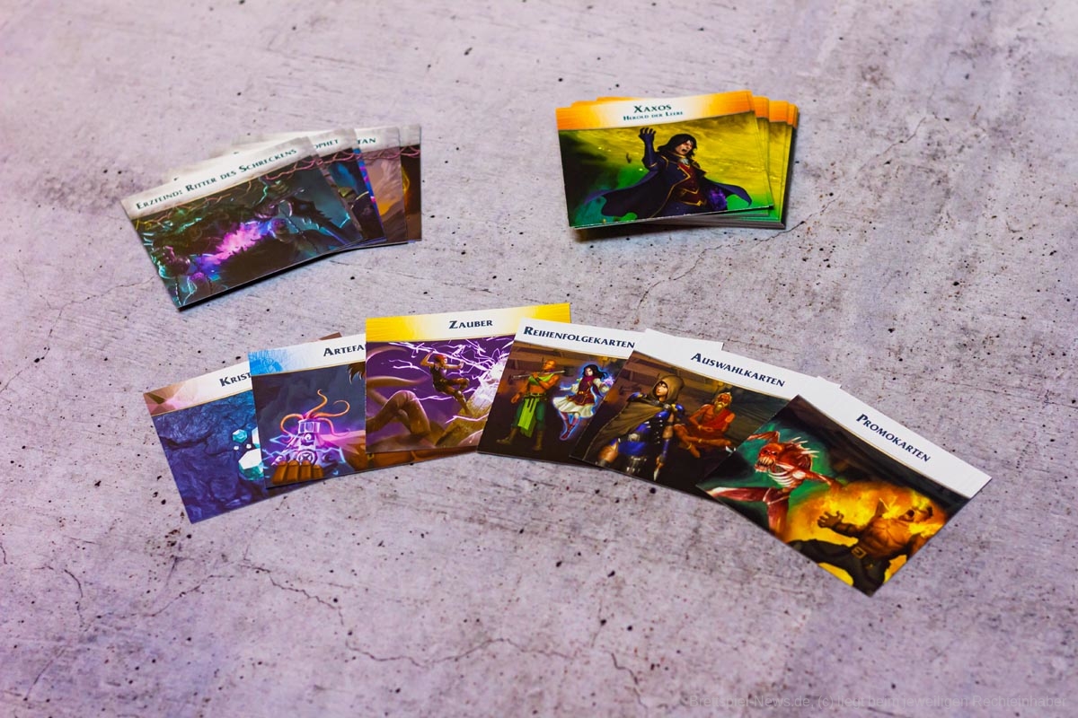 Positiv hervorzuheben ist das durchweg hochwertige Material des Spiels. Insbesondere die Karten sind sehr stabil und mit einer Oberfläche versehen, die haptisch äußerst ansprechend ist und das Mischen deutlich erleichtert.