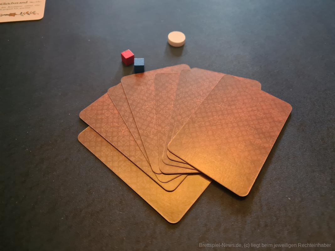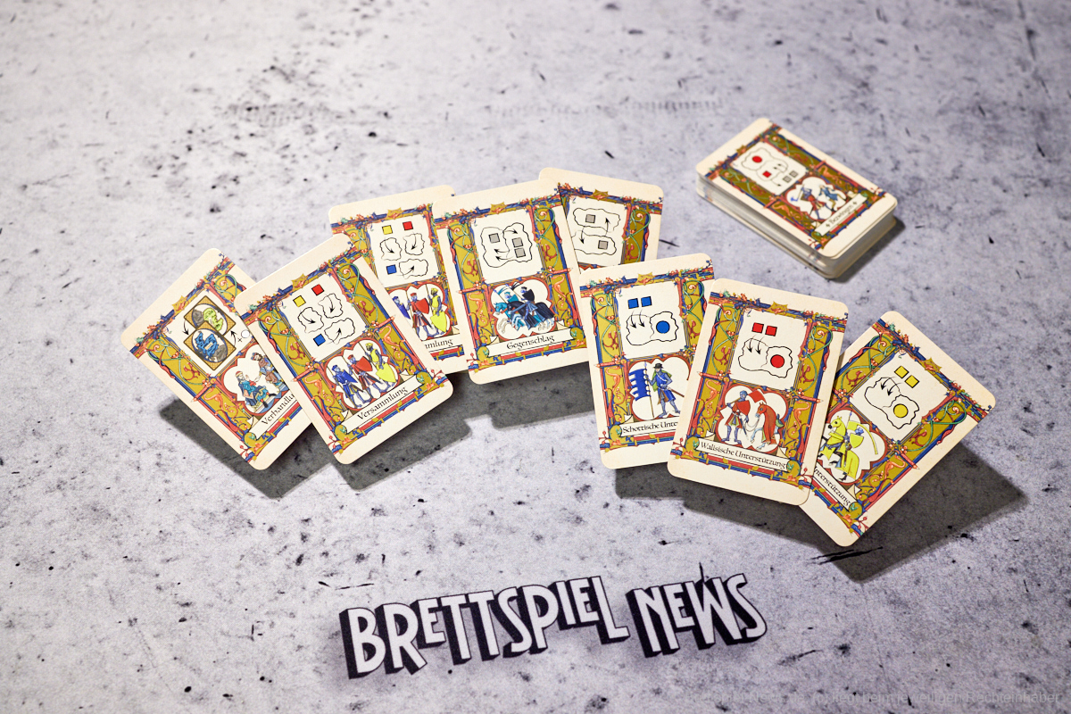 So leicht wie das alles klingen mag, ist es jedoch nicht. Wie bereits erwähnt, verfügen alle Personen über acht Karten. Sind diese gespielt, bekommen sie keine neuen Karten zurück! Hat somit jemand alle Karten schnell verpulvert, während die anderen Personen noch Karten besitzen, muss sie handlungsunfähig zusehen, wie die anderen die eigene Arbeit nach und nach zunichte machen. „Der König ist tot“ ist ein Spiel der Planung und der Abwägung, wie viel Kraft zu welcher Zeit eingesetzt wird. Wird zu früh gehandelt, können die anderen das Vorhaben vereiteln. Handelt jemand aber zu spät, können die Machtverhältnisse vielleicht nicht mehr gedreht werden.