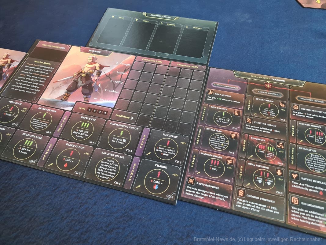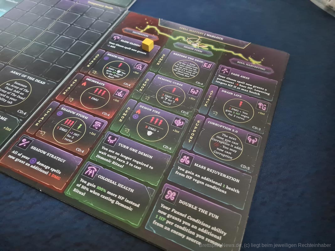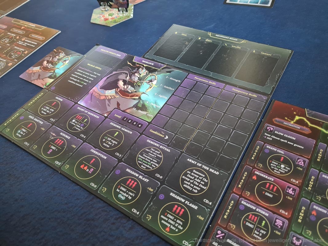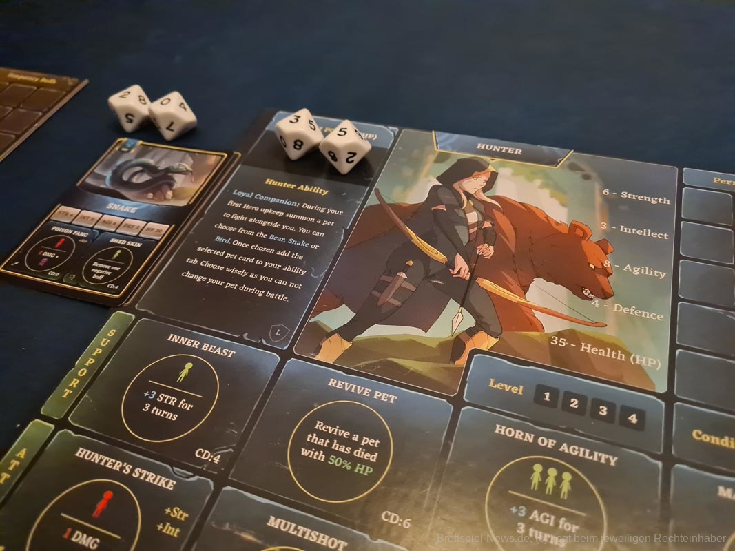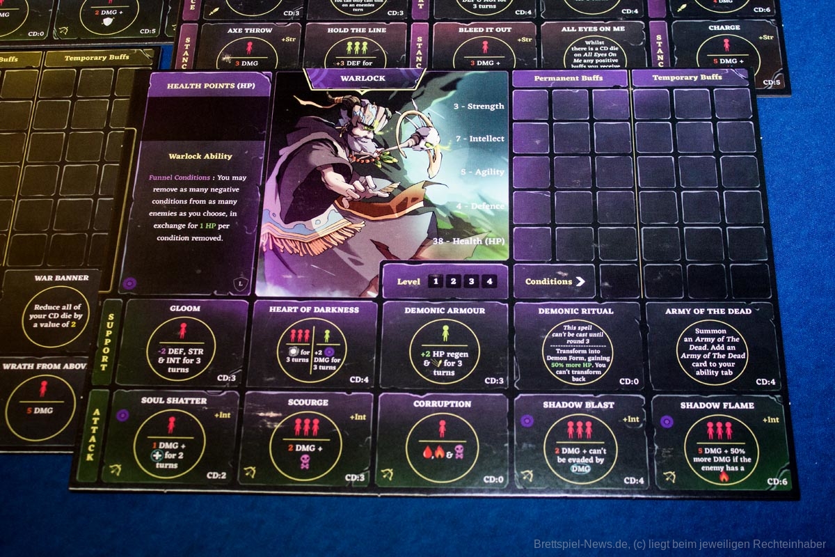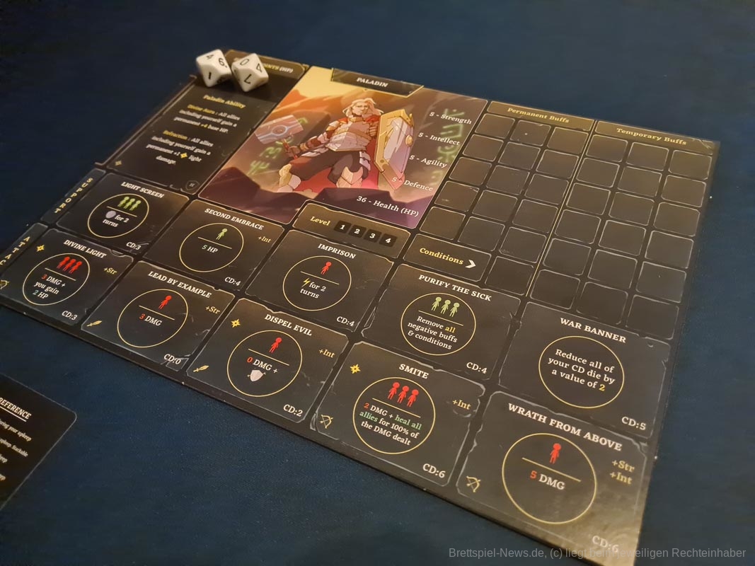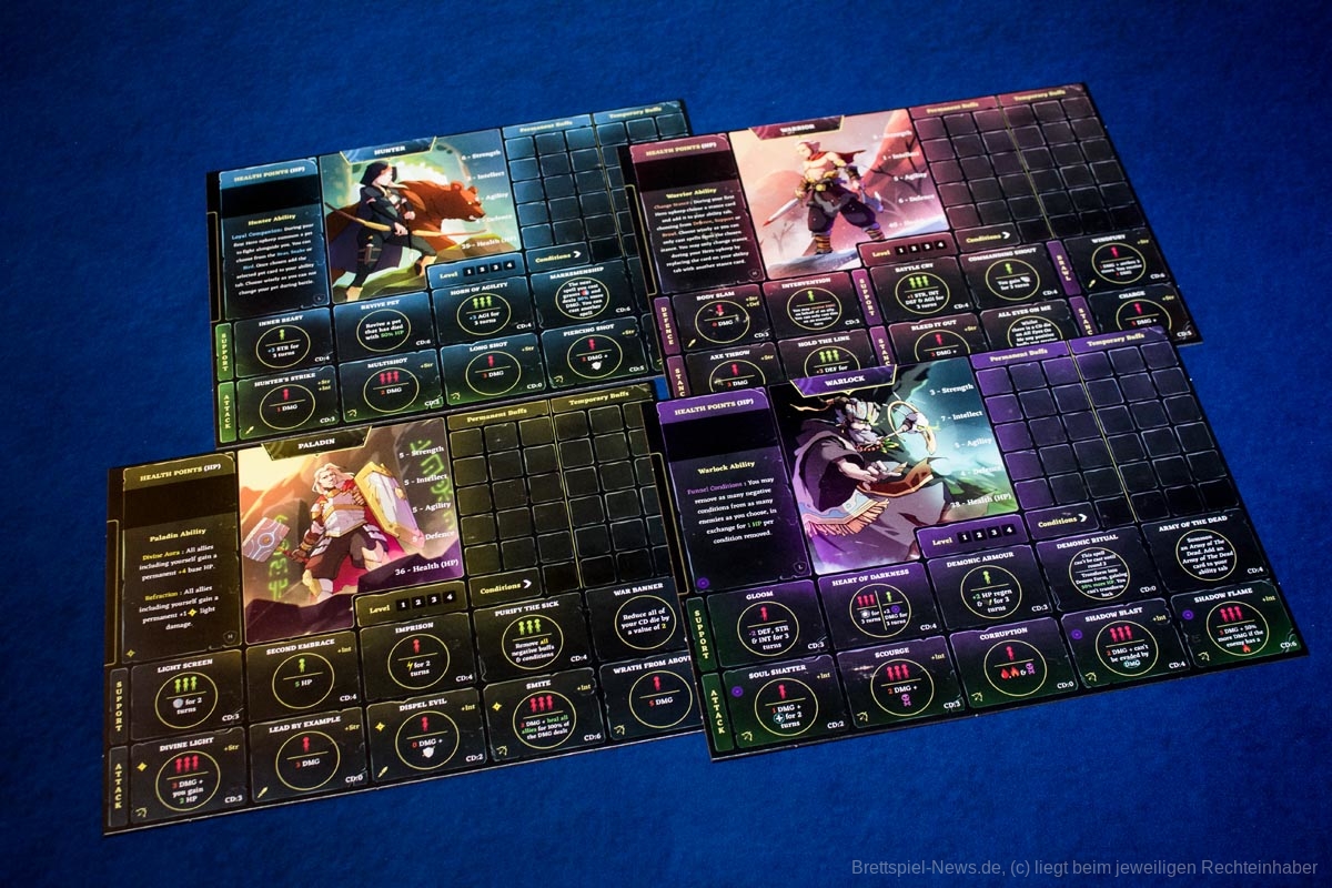 Generell fand ich das Spielgefühl des Prototypen sehr angenehm. Insbesondere als alter „World of Warcraft“-Spieler fand ich einige Parallelen, die schon fast keine Zufälle sein können. Sobald jemand dieses Videospiel mehr als nur 10 Minuten gespielt hat, kann mir diese Person die Fähigkeiten der meisten Helden aus „Heroes of the Shire“ voraussagen. Der Schamane wird von Heilungs- oder Angriffstotems unterstützt, der Krieger besitzt verschiedene Kampfstellungen, die ihn besser Schaden einstecken oder austeilen lassen, der Paladin und der Druide können auf Schaden, Heilung oder Tank spezialisiert werden und der Warlock verteilt viele Malus-Effekte auf Gegner und kann eine Dämonenform erhalten. Grundlegend war ich sehr amüsiert, dass sich alles so mit meinen Erinnerungen abgeglichen hat. Ich meine das Ganze auch nicht negativ. „Heroes of the Shire“ spielt sich mit seinen „Cooldown“- und Levelsystem genauso, wie sich ein „World of Warcraft“-Brettspiel spielen lassen sollte (auch wenn „Heroes of the Shire“ das gar nicht sein möchte).