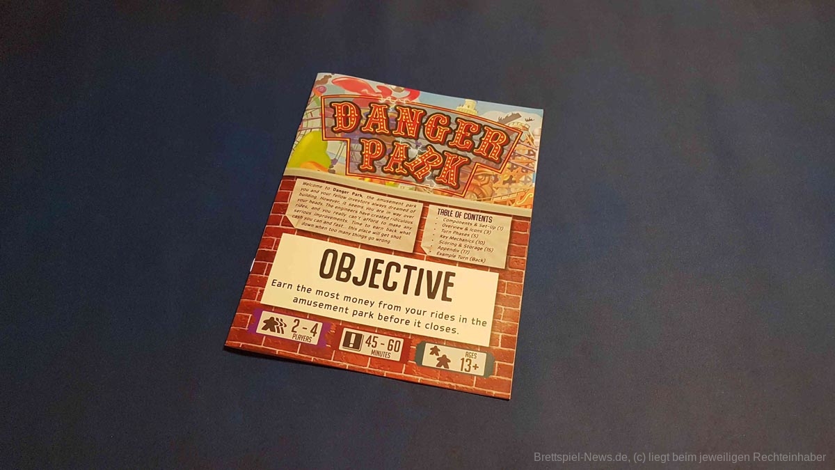 „Danger Park“ ist ein etwas anderes Freizeitparkspiel für 2 – 4 Personen ab 13 Jahren, welche für 45 – 60 Minuten Karten zu einem Freizeitpark auslegen, um mit ihren Attraktionen so viel Geld wie möglich zu scheffeln, bevor diese in sich zusammenfallen.