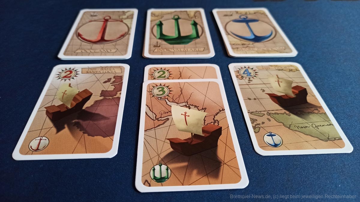 Positiv hervorzuheben ist, dass an Farbenblinde gedacht wurde, indem die Karten sich nicht nur nach Farbe sondern auch Ankerform unterscheiden. Leider ist dies noch immer kein Standard.