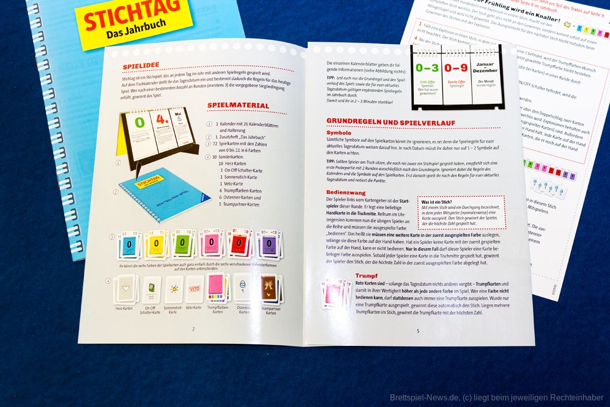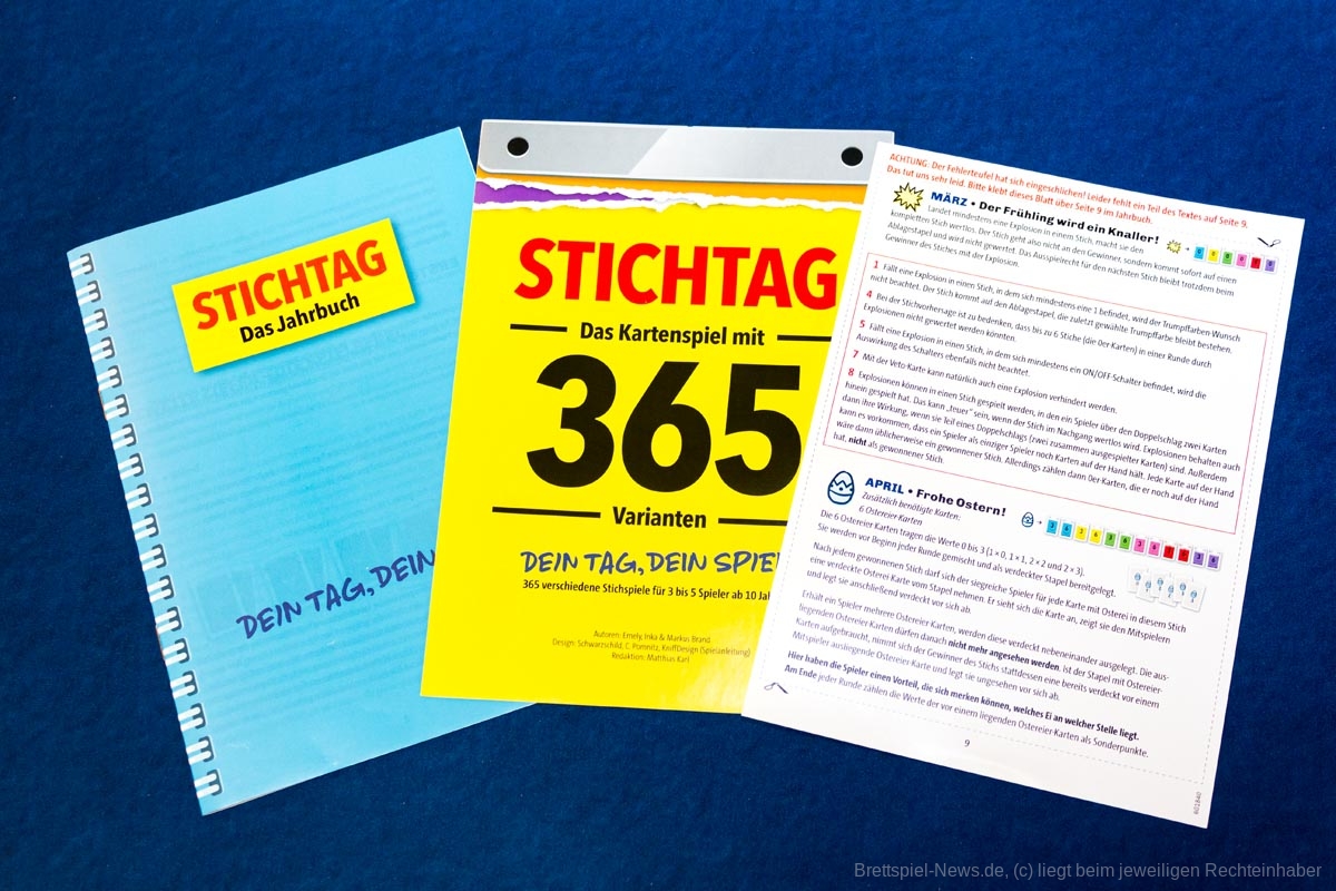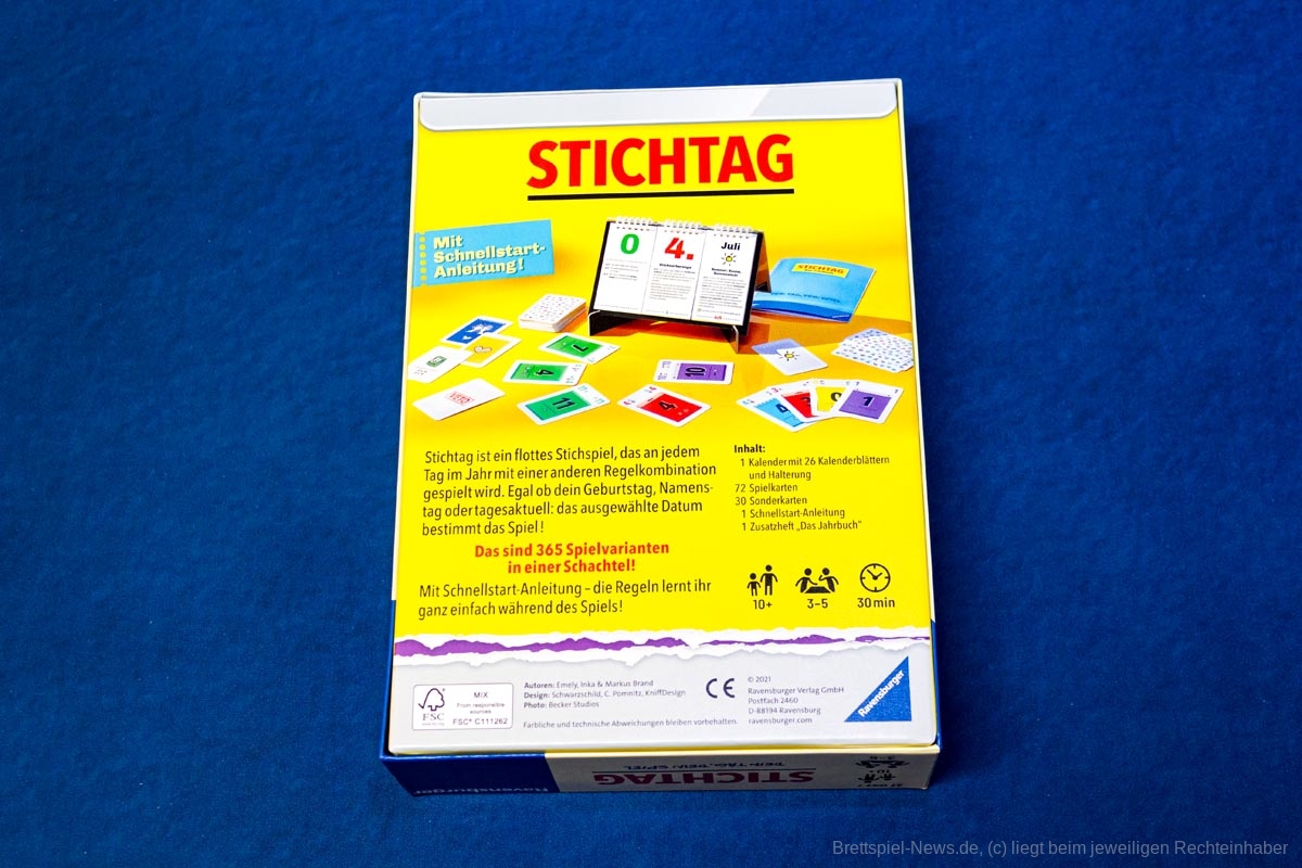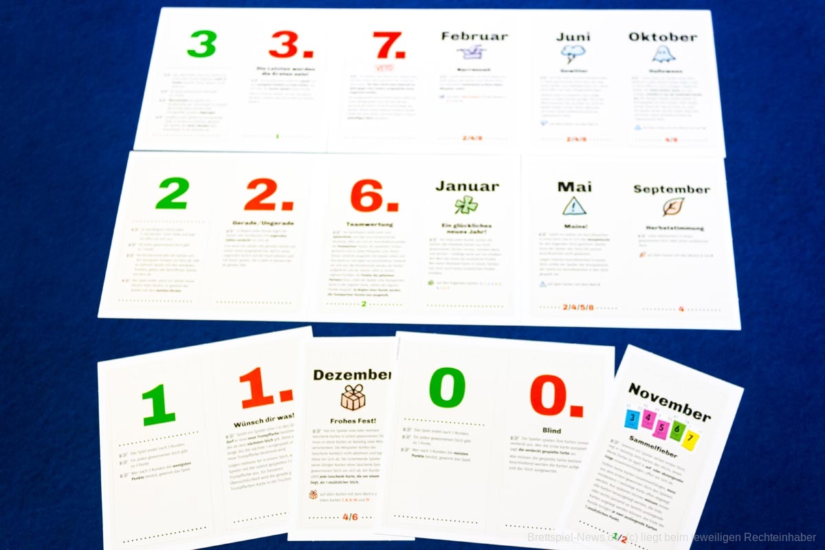 In „Stichtag“ bestimmt das Datum den Spielmodus, denn es gibt für jeden Tag des Jahres eine andere Regelkombination. Damit dürfte „Stichtag“ mit die meisten Spielvariationen aller Spiele bieten.