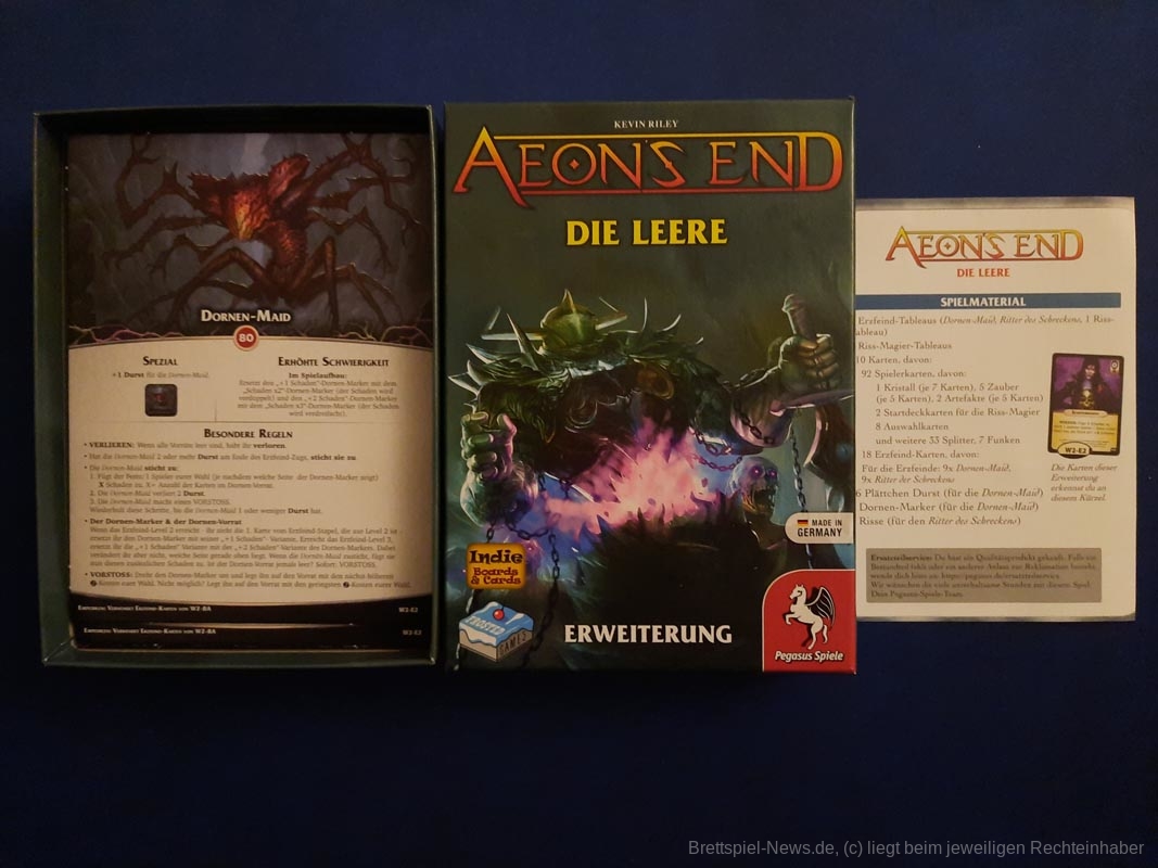 Wir haben "Aeons End - Die Leere" mit einem Presserabatt bei Pegasus Spiele gekauft.