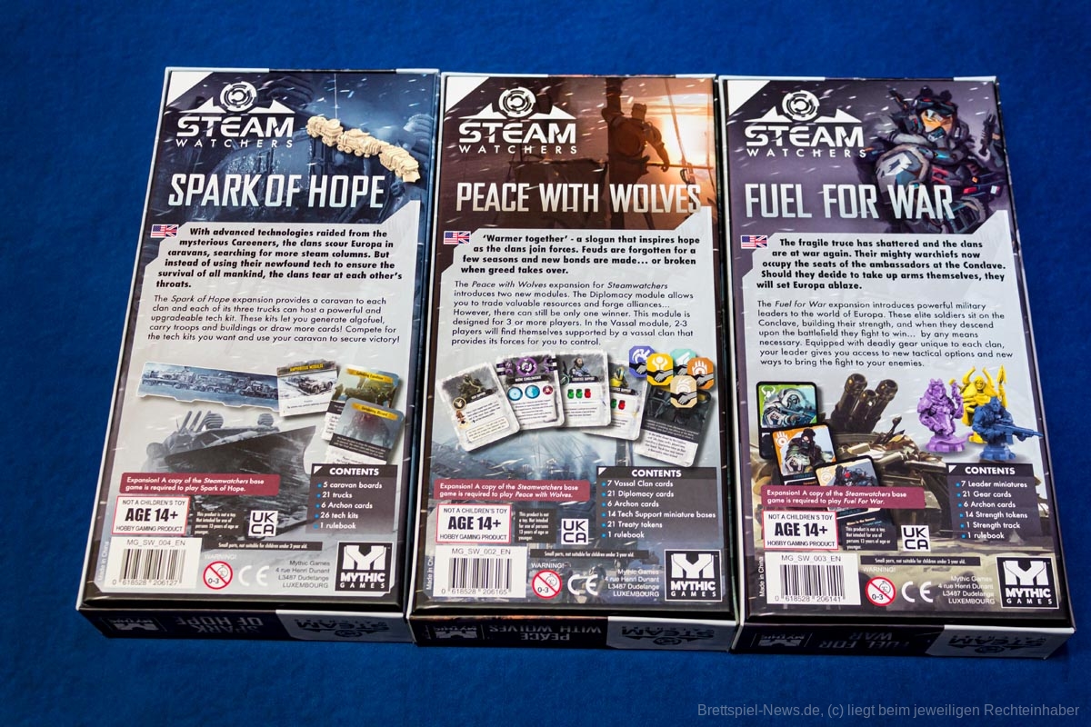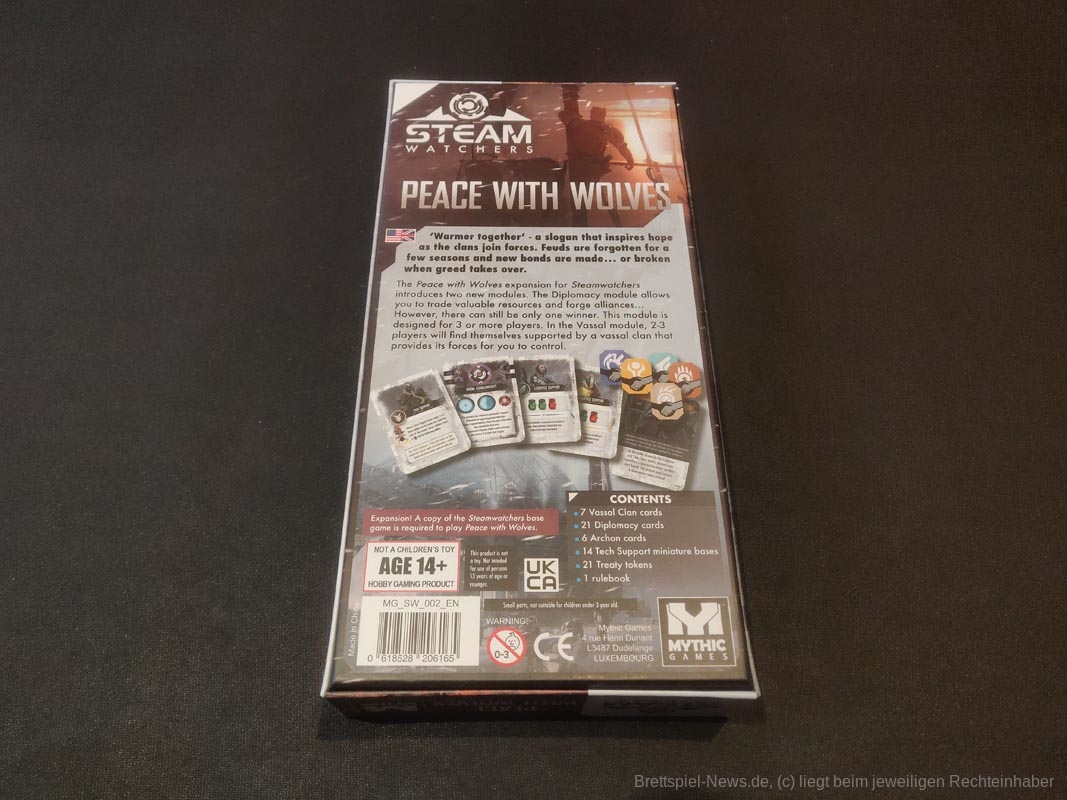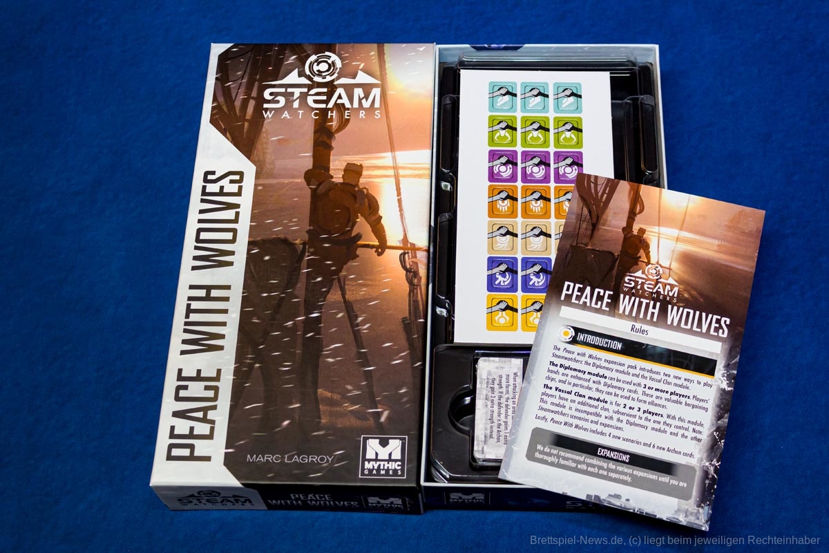 Auf der anderen Seite steht das Diplomatie-Modul, dass das Spiel mit 3-5 Personen um Verhandlungen erweitert, die für meinen Geschmack deplatziert wirken. Steamwatchers lebt von den Konfrontationen und den spannenden Zügen. Beides leidet unter den Diplomatie-Karten. Die Züge werden in die Länge gezogen und Konfrontationen rücken aus dem Fokus. Außerdem hält die Spielenden auch im Grundspiel nichts davon ab, Allianzen zu bilden – und das ganz ohne extra Material oder eine Spielzeitverlängerung um etwa 30 Minuten (laut Anleitung). So wirkt das Modul etwas konstruiert und will sich nicht so organisch einfügen wie das Vasallen-Modul.