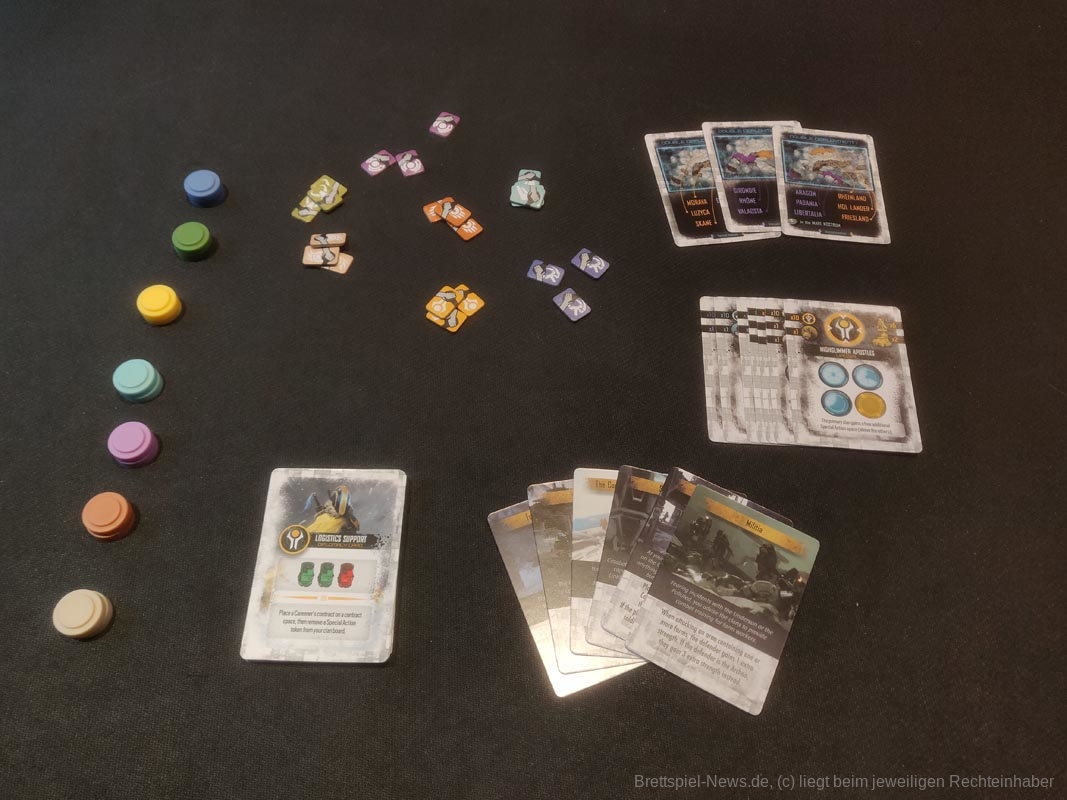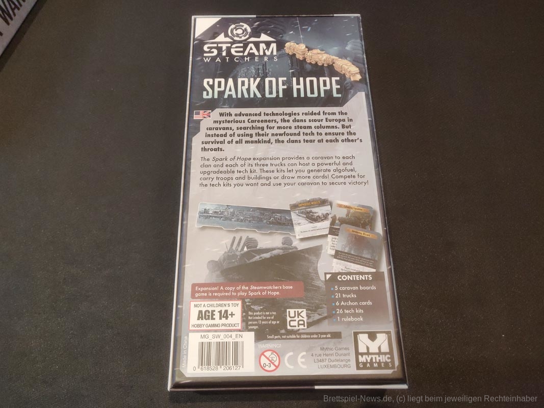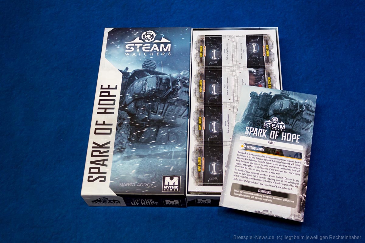 Und abschließend müssen auch an dieser Stelle die Spielschachteln erwähnt werden. In zwei von drei Erweiterungsboxen ist mindestens 85% Luft enthalten, wenn man die wieder einmal nicht besonders ausgeklügelten Inlays abzieht. Nur die Karawanen in Spark of Hope füllen die Schachtel aus. Immerhin sollte sich so der Inhalt einigermaßen im Grundspiel verstauen lassen – insofern man sinnvolle Fächer in den seltsam aufgebauten Inlays finden kann.