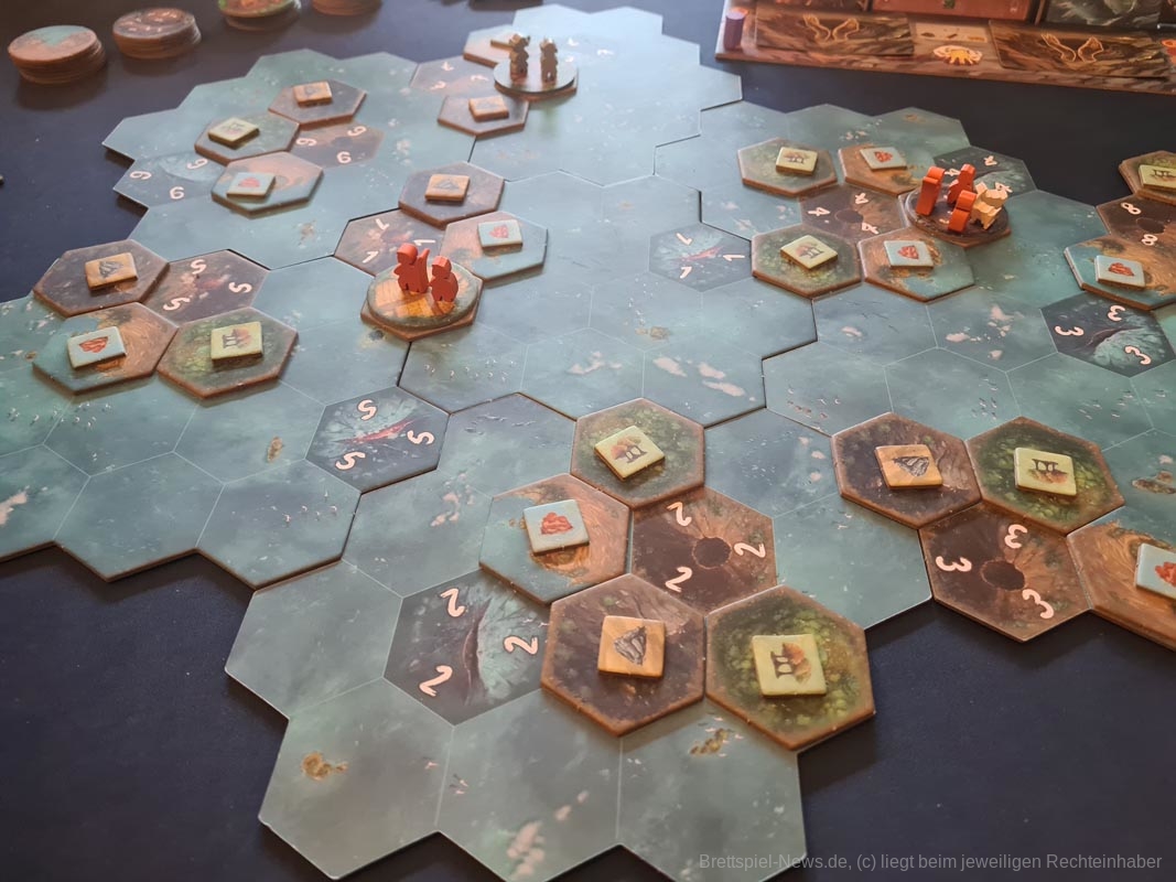 Insbesondere am Anfang der Partie herrschte aber immer die typische Analyse-Paralyse. Was soll ich tun? Was kann ich eigentlich alles machen? Was ist am sinnvollsten? Diese Fragen schwirren immer im Kopf herum, da sich „Tindaya“ um einiges schneller verlieren als gewinnen lässt.