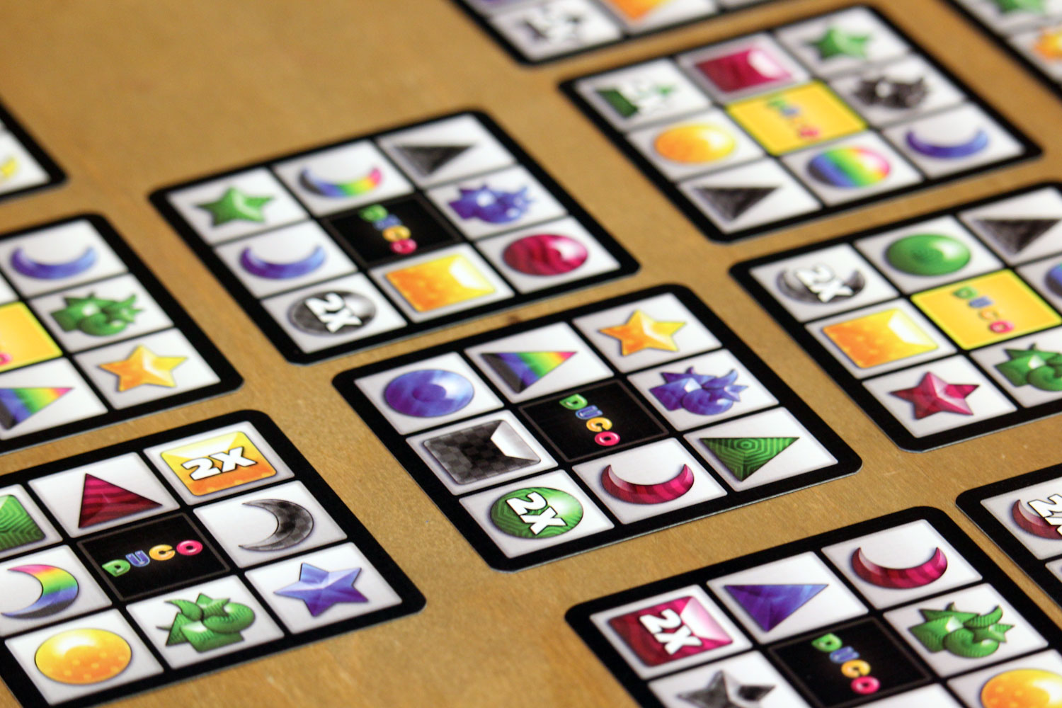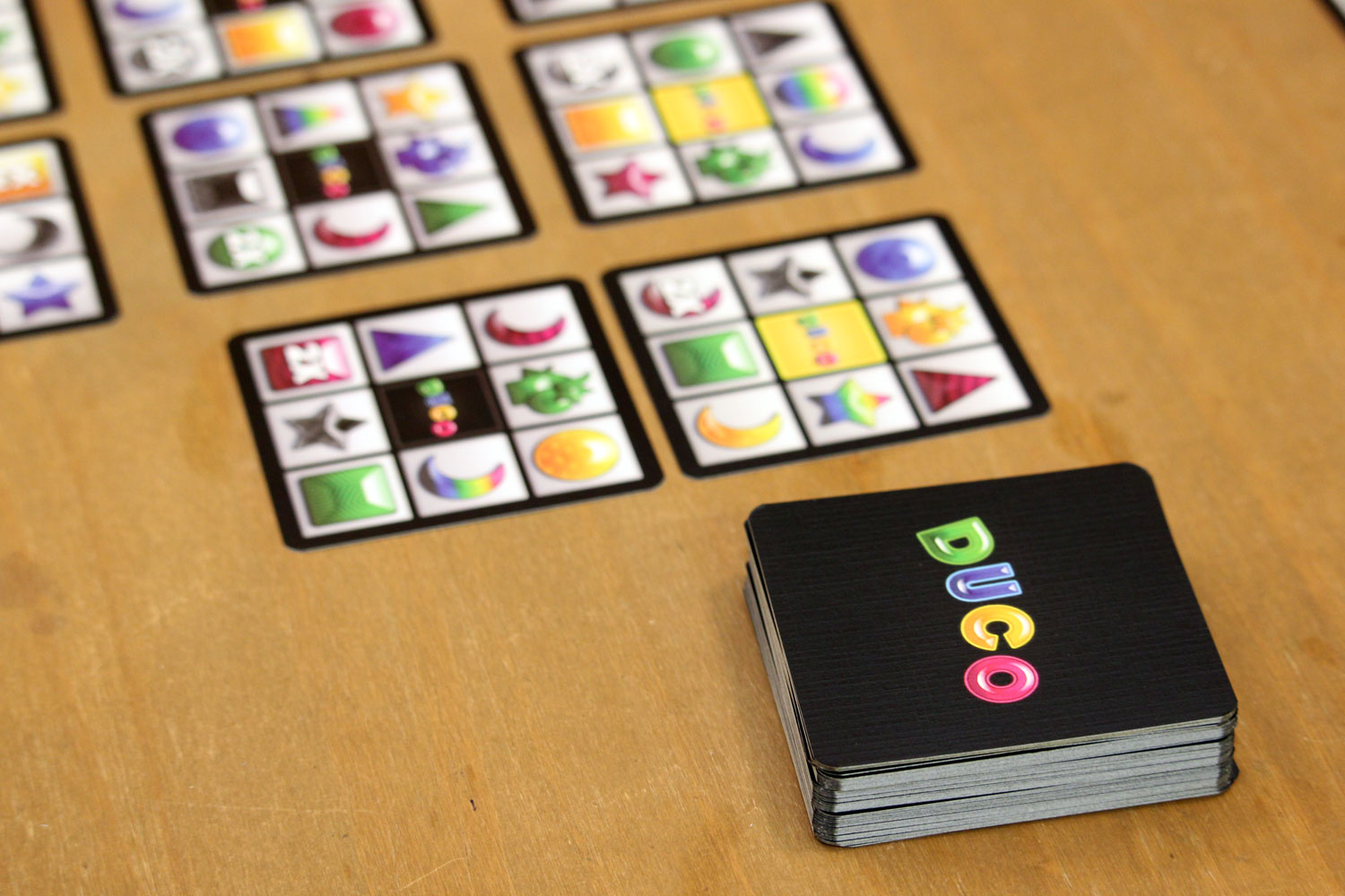 So ging es mir bei dem kleinen Puzzlespiel “Duco”. Dieses kommt in einer kleinen und schlichten Schachtel daher- Ein Blick auf die Rückseite verriet, dass es in neun Sprachen erklärt wird, für ein bis fünf Spieler geeignet ist und ca. 20-30 Minuten dauert. In der Box befindet sich ein Stapel mit 75 Spielkarten. Der Blick in die Anleitung ist schnell erledigt und das Spiel in Sekunden vorbereitet. Es wird zusätzlich nur ein Blatt und ein Stift benötigt um die Punkte zu notieren. Doch kann ein so simples Spiel motivieren?