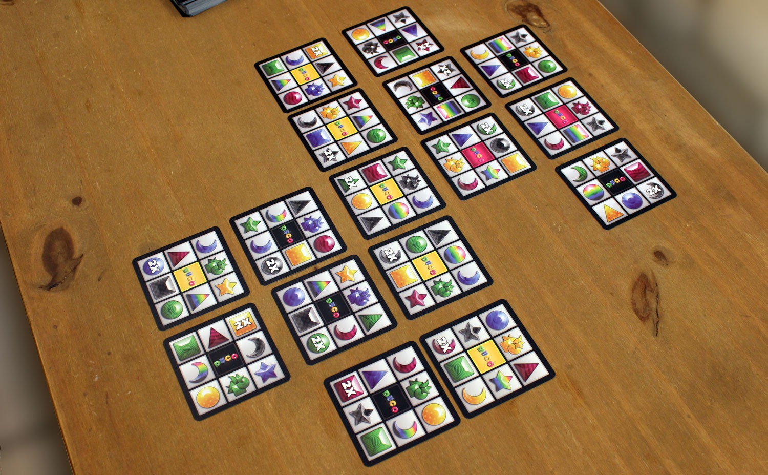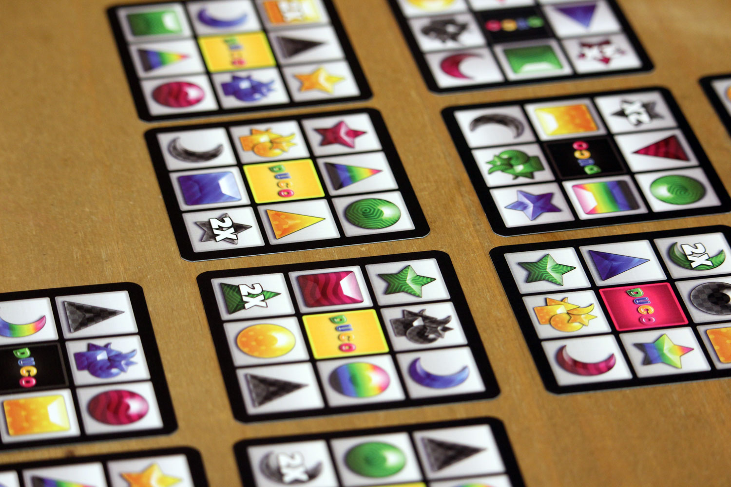 Beim Startspieler startend legen die Spieler ihre Karten an. Bei jeder Übereinstimmung der Symbole oder der Farbe gibt es einen Punkt. Stimmen Symbol und Farbe überein, gibt es 2 Punkte. Bei 2x Symbolen gibt es doppelte Punkte. Bei zwei 2x Symbolen sogar vierfach Punkte. Um die Karten gut anlegen zu können und die maximalen Punkte zu erhalten darf die zu legende Karte beliebig gedreht werden. Nach dem Anlegen, können die Punkte gezählt und notiert werden. Anschließend noch eine neue Karte ziehen und der nächste Spieler ist an der Reihe.