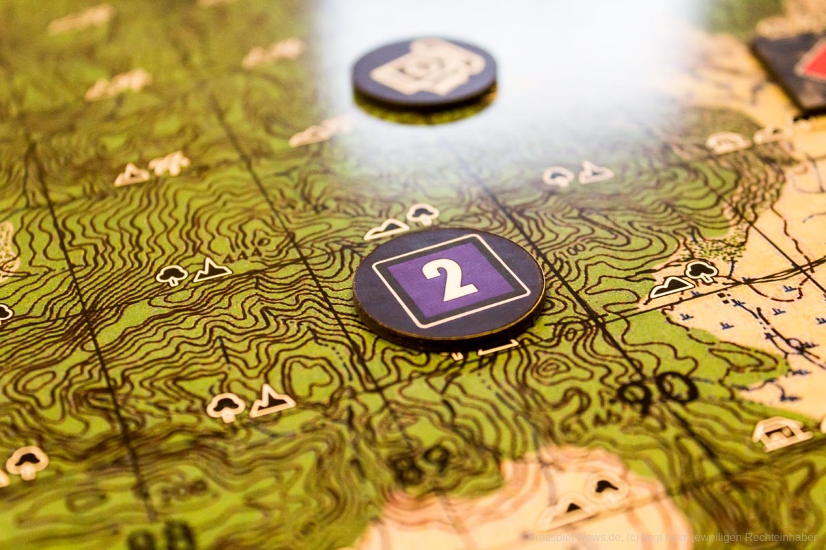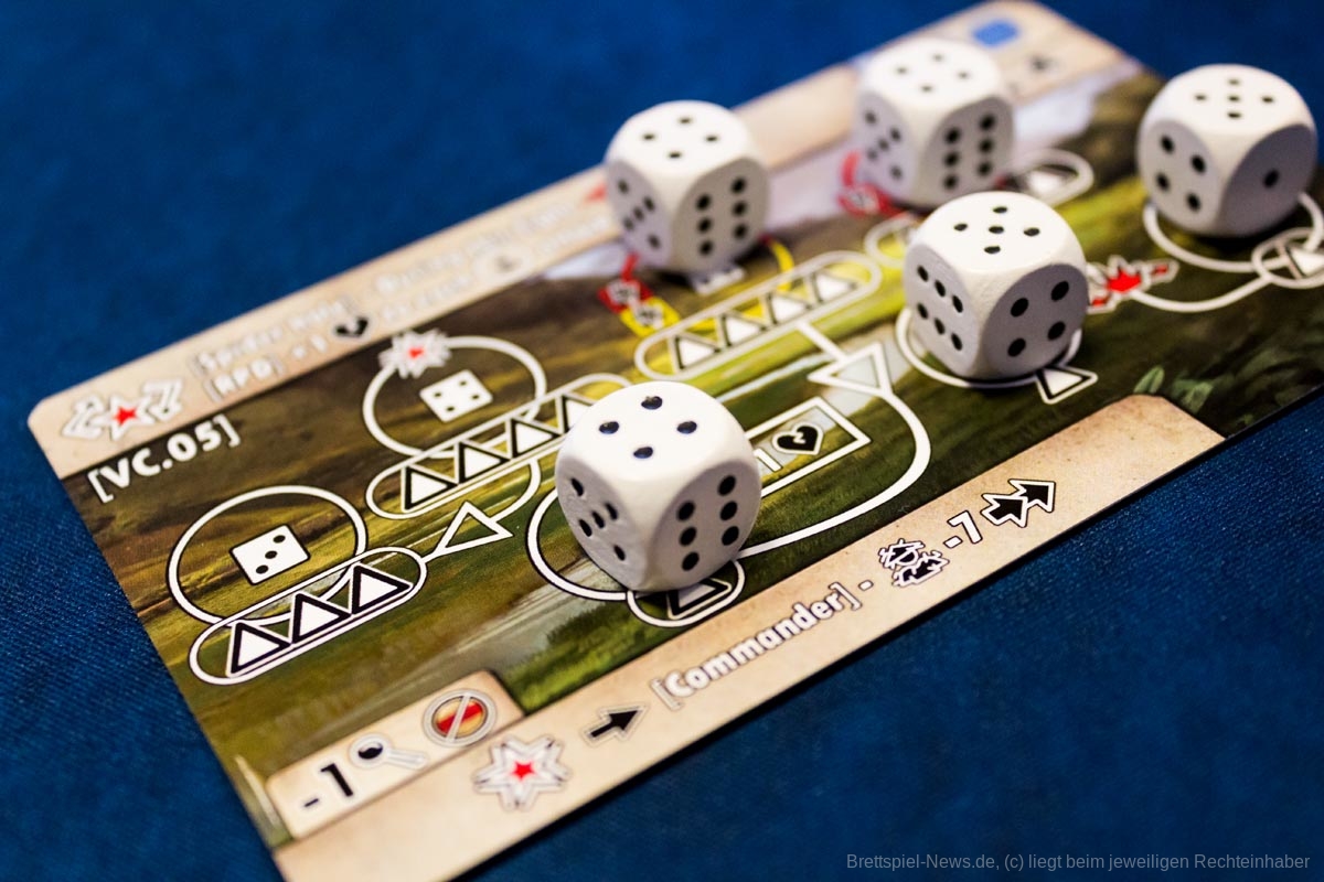 Wer sonst Wargaming mag und hier einen Blick auf Purple Haze werfen will, dem sei gesagt, dass es im Prinzip um ein Solo-Spiel handelt, dass auch kooperativ in der Gruppe gespielt werden kann. Die Konfrontation fehlt dementsprechend, denn der Gegner wird komplett über Würfel gesteuert.