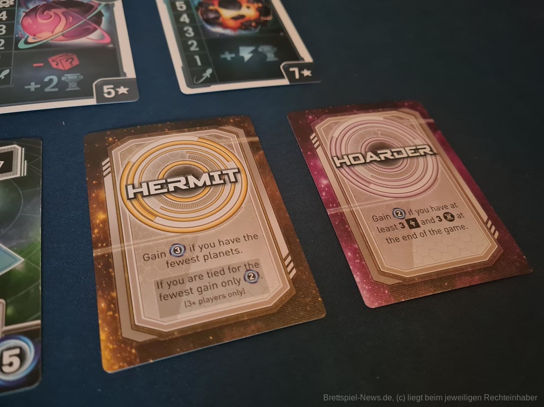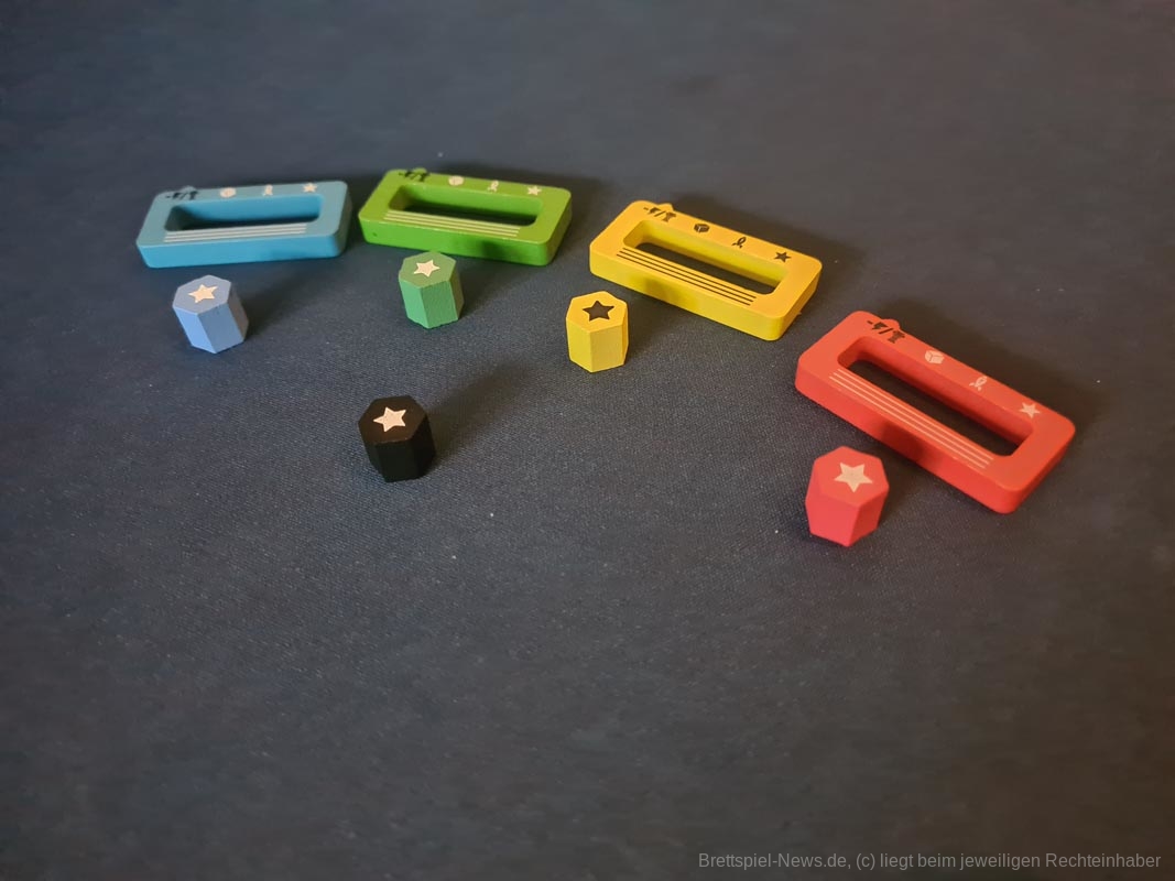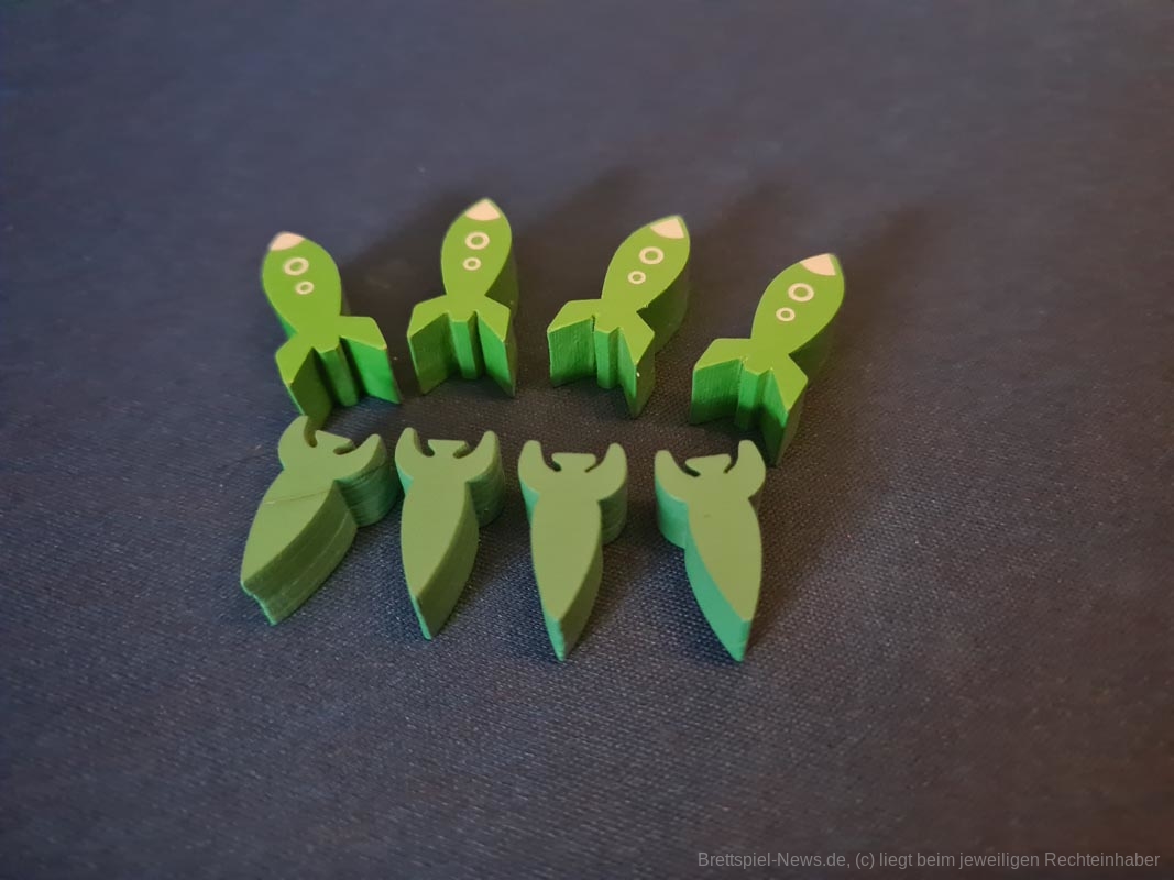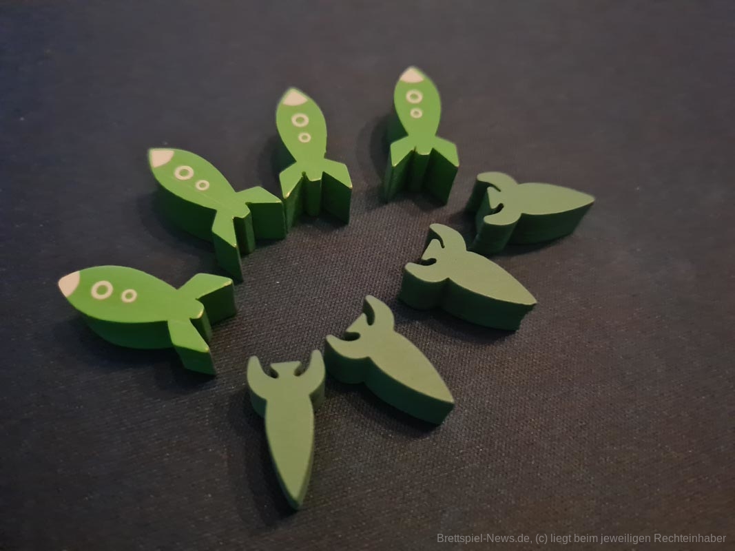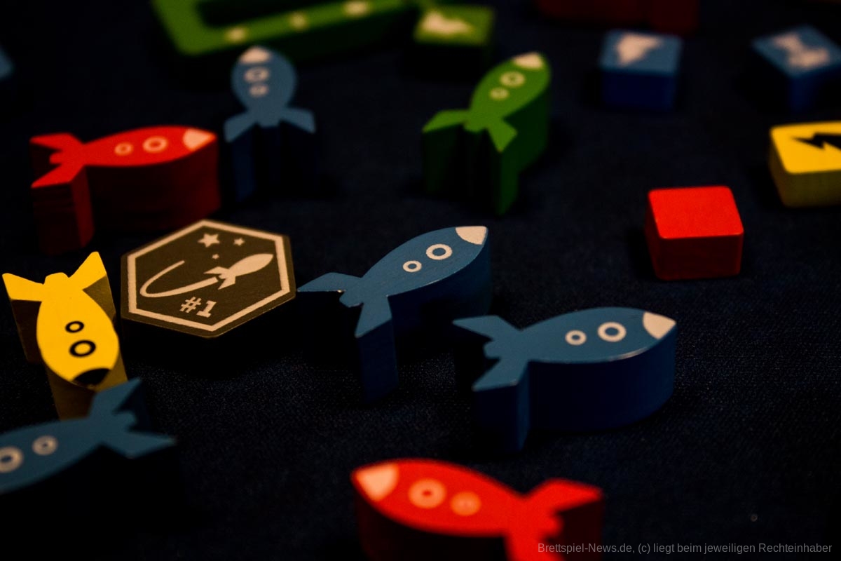 Der Grund dafür ist aber weniger positiv. „Blast off“ wirkt zwar im Design schlanker und schnittiger, hat dafür aber diese Pfunde in der Spieltiefe und der Spielmechanik eingebüßt. Ja, das Spielmaterial ist hochwertiger, das Spiel lässt sich von nun an aber nur noch mit bis zu vier Personen und nicht mehr mit fünf spielen. Die Regeln sind sprachneutral und lassen sich besser erklären/verstehen, dafür fehlt aber ein eigener Solo-Modus und die Möglichkeit, geheime Ziele ins Spiel zu bringen, wie es beim Original noch der Fall war.